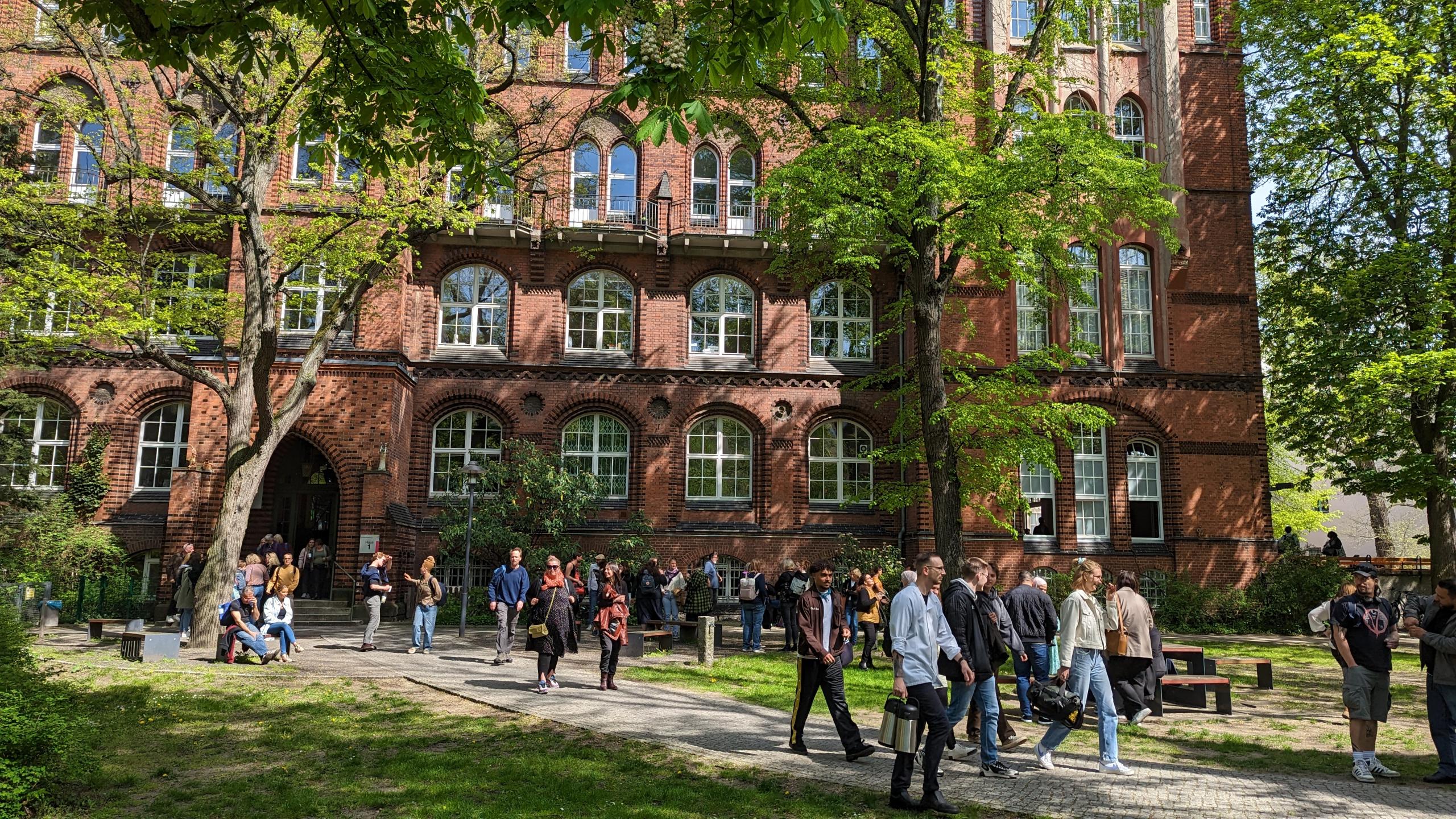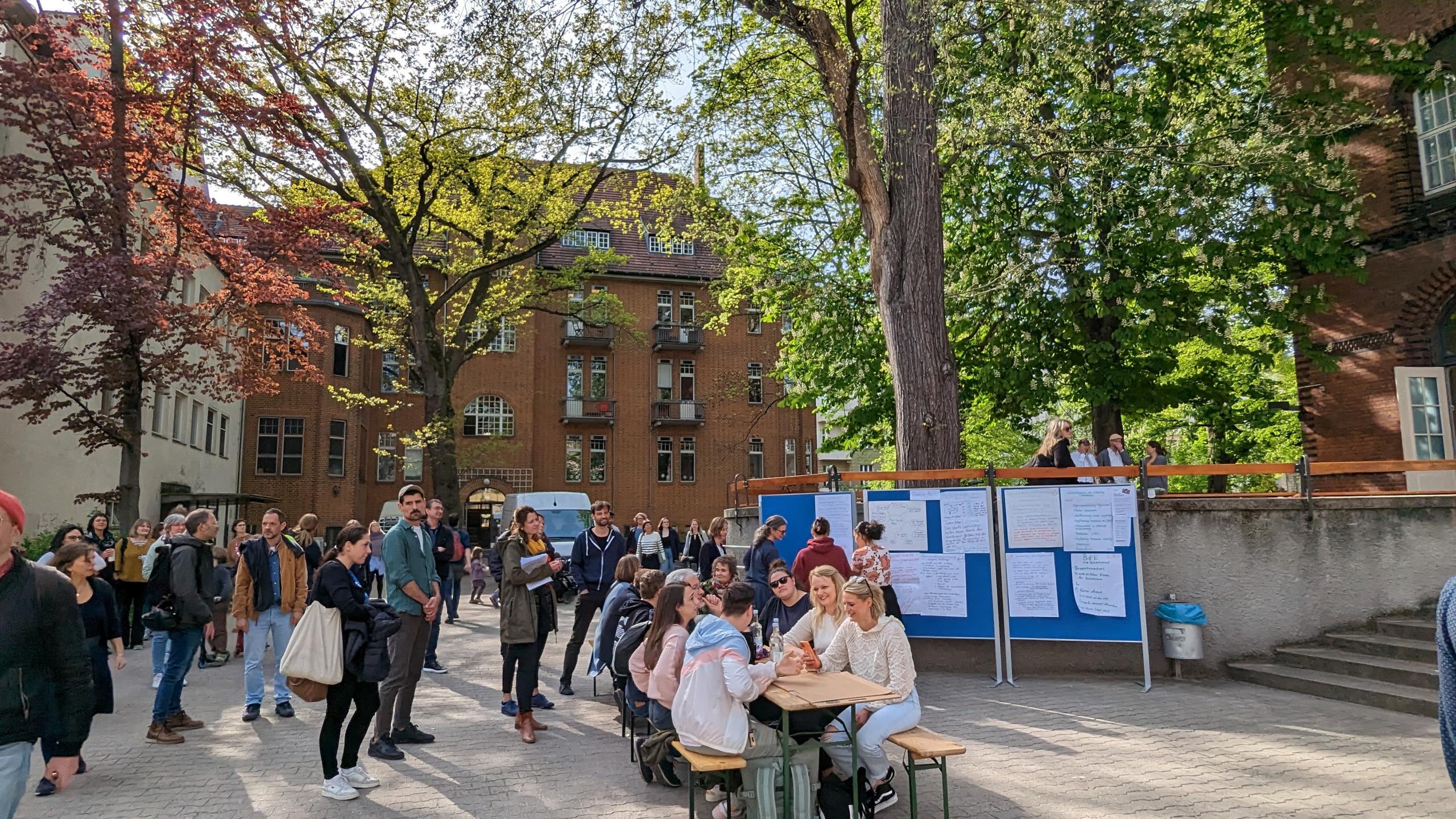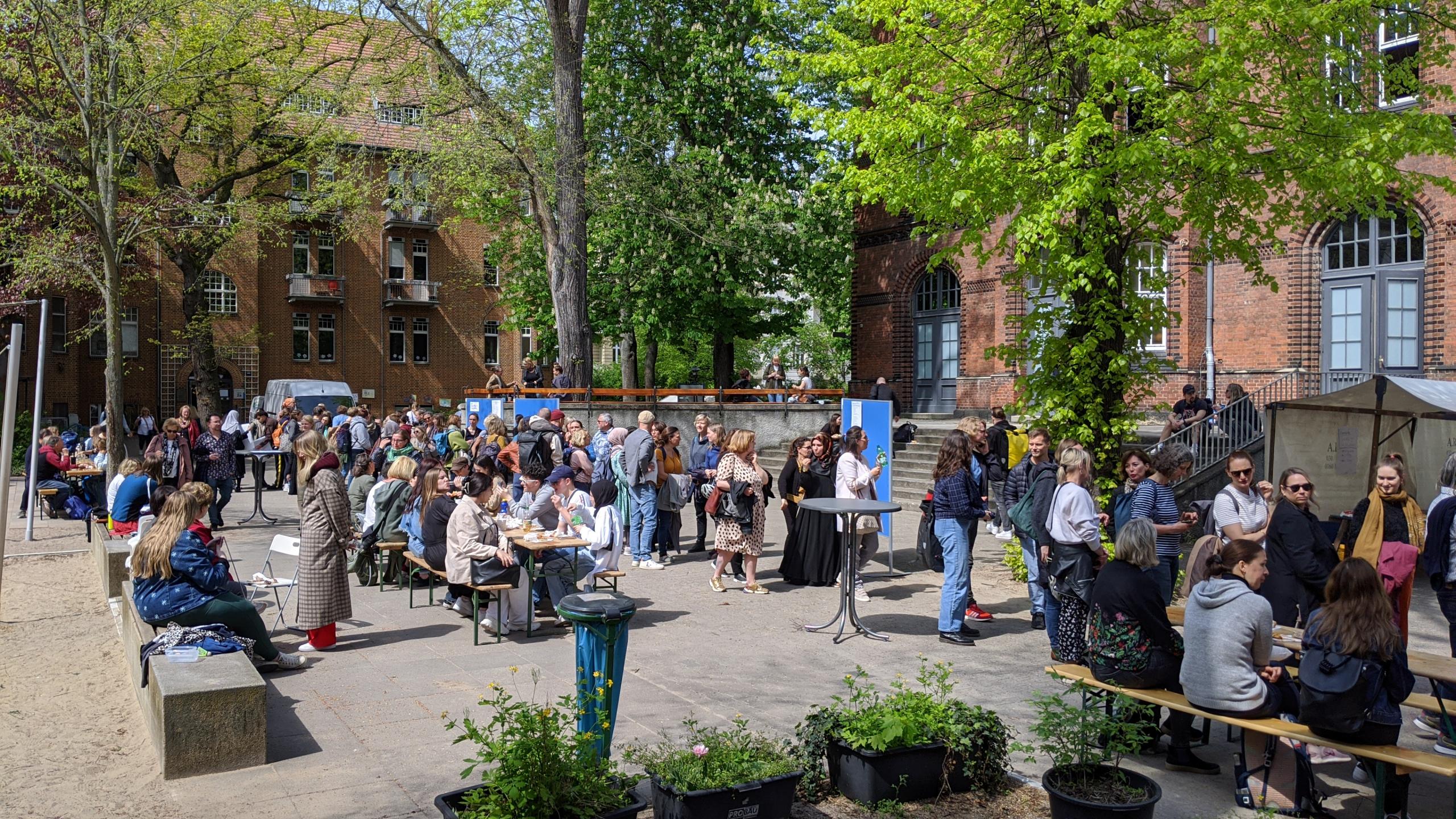 5. Mai 2023 // Die Sonne lacht, die Knospen sprießen und Hunderte Kolleg*innen und Studierende des PFH Berlin machen sich auf den Weg zum PFH-Tag 2023. Über 470 Anmeldungen waren im Voraus eingegangen und über 30 Workshops wurden am Vormittag angeboten. Neben Speis und Trank erwartete die Teilnehmer*innen am Nachmittag das Herzstück des Tages: Drei inspirierende Vorträge und Arbeitsgruppen, um Ansätze zu entwickeln, die über diesen Tag hinaus reichen sollen. Am Abend verwandelte der Campus sich zum Festsaal - bei ecuadorianischen Tänzen und Musik hauseigener Bands wurde getanzt, gelacht, geredet.