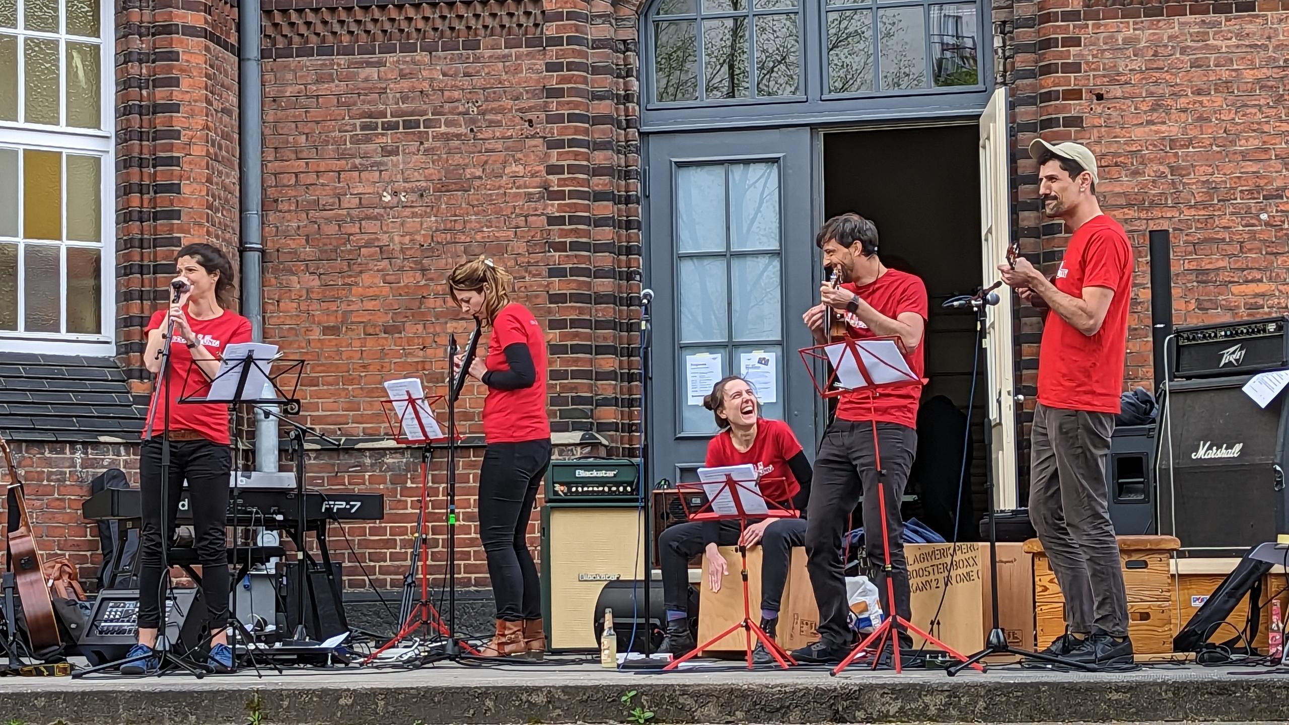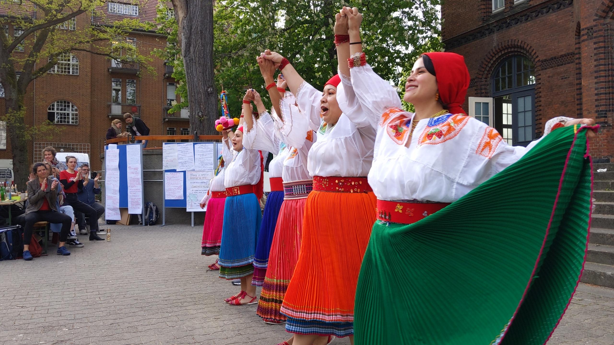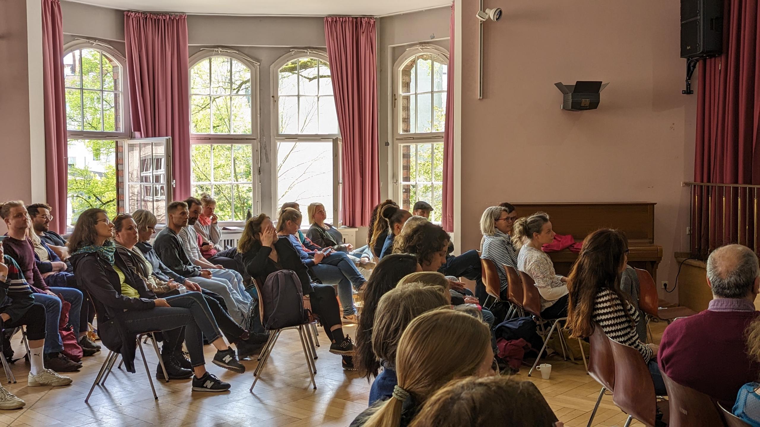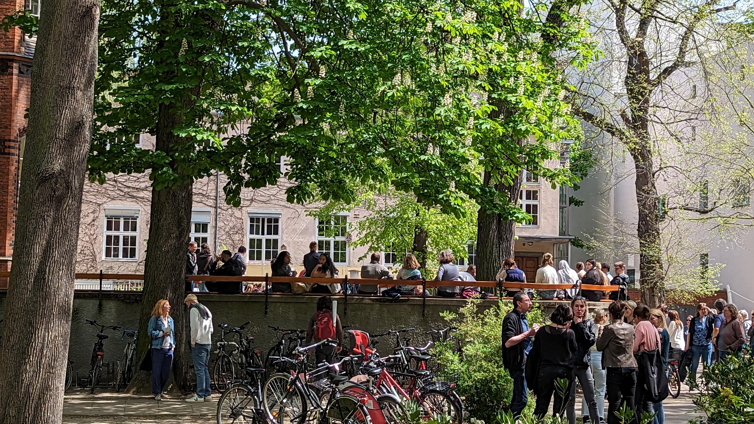 5. Mai 2023 // Die Sonne lacht, die Knospen sprießen und Hunderte Kolleg*innen und Studierende des PFH Berlin machen sich auf den Weg zum PFH-Tag 2023. Über 470 Anmeldungen waren im Voraus eingegangen und über 30 Workshops wurden am Vormittag angeboten. Neben Speis und Trank erwartete die Teilnehmer*innen am Nachmittag das Herzstück des Tages: Drei inspirierende Vorträge und Arbeitsgruppen, um Ansätze zu entwickeln, die über diesen Tag hinaus reichen sollen. Am Abend verwandelte der Campus sich zum Festsaal - bei ecuadorianischen Tänzen und Musik hauseigener Bands wurde getanzt, gelacht, geredet.