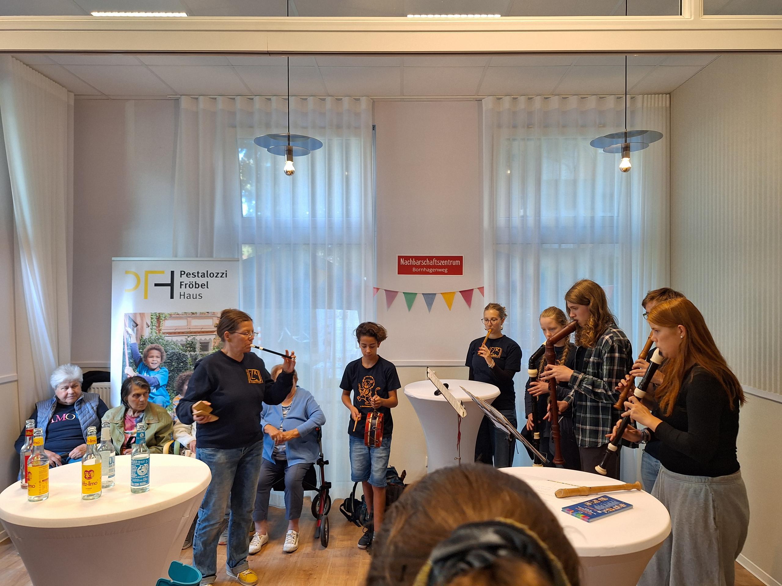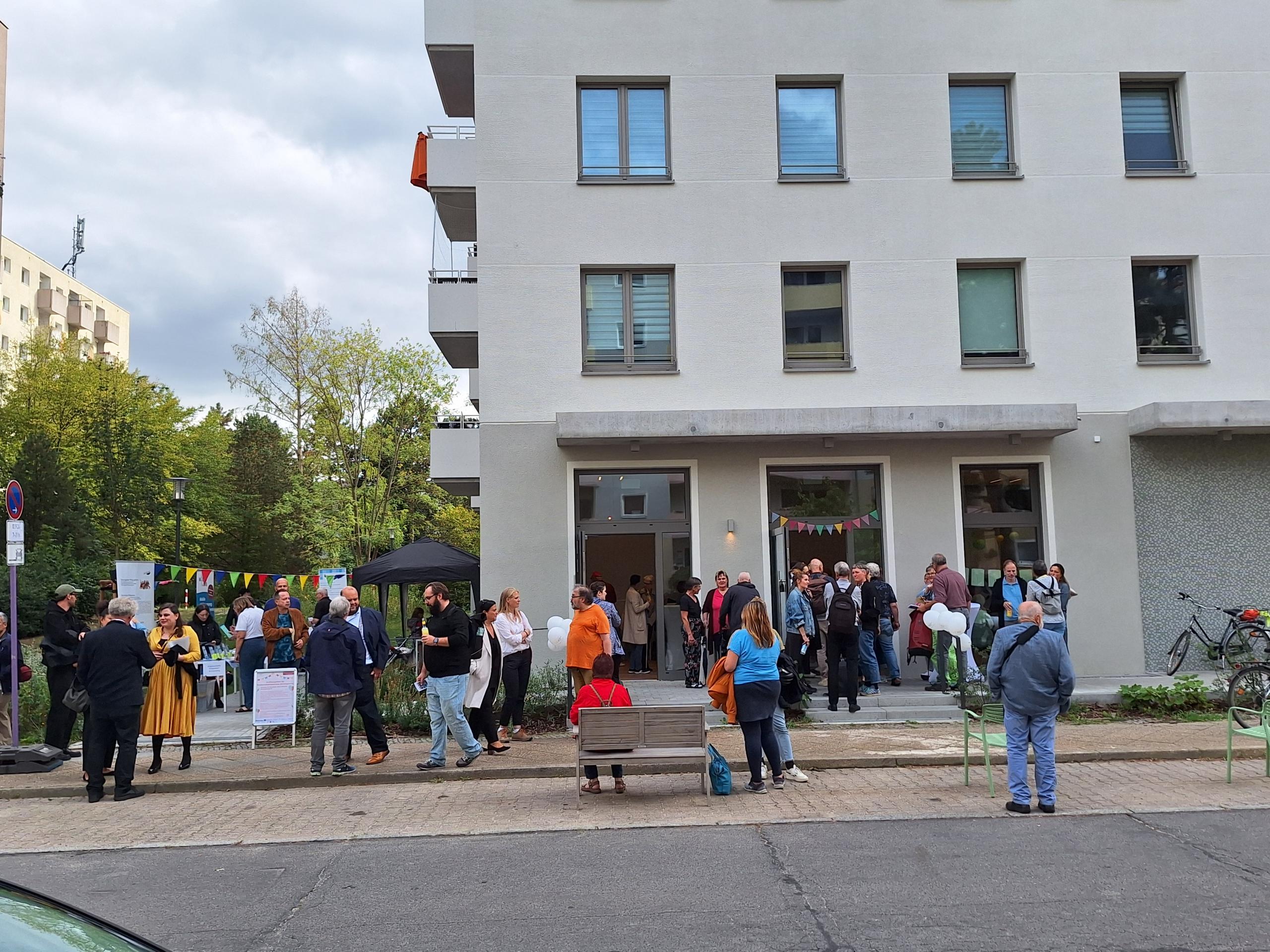 Zur Eröffnung bot das Zentrum ein abwechslungsreiches Rahmenprogramm mit einer Fotoausstellung über die Bauarbeiten, Bastelaktionen sowie interaktiven Stellwänden mit Informationen zu den Angeboten des Nachbarschaftszentrums. Infostände verschiedener Organisationen informierten über lokale Angebote, während Live-Musik von Tibia Leonis von der Leo-Kestenberg-Musikschule für eine festliche Atmosphäre sorgte.