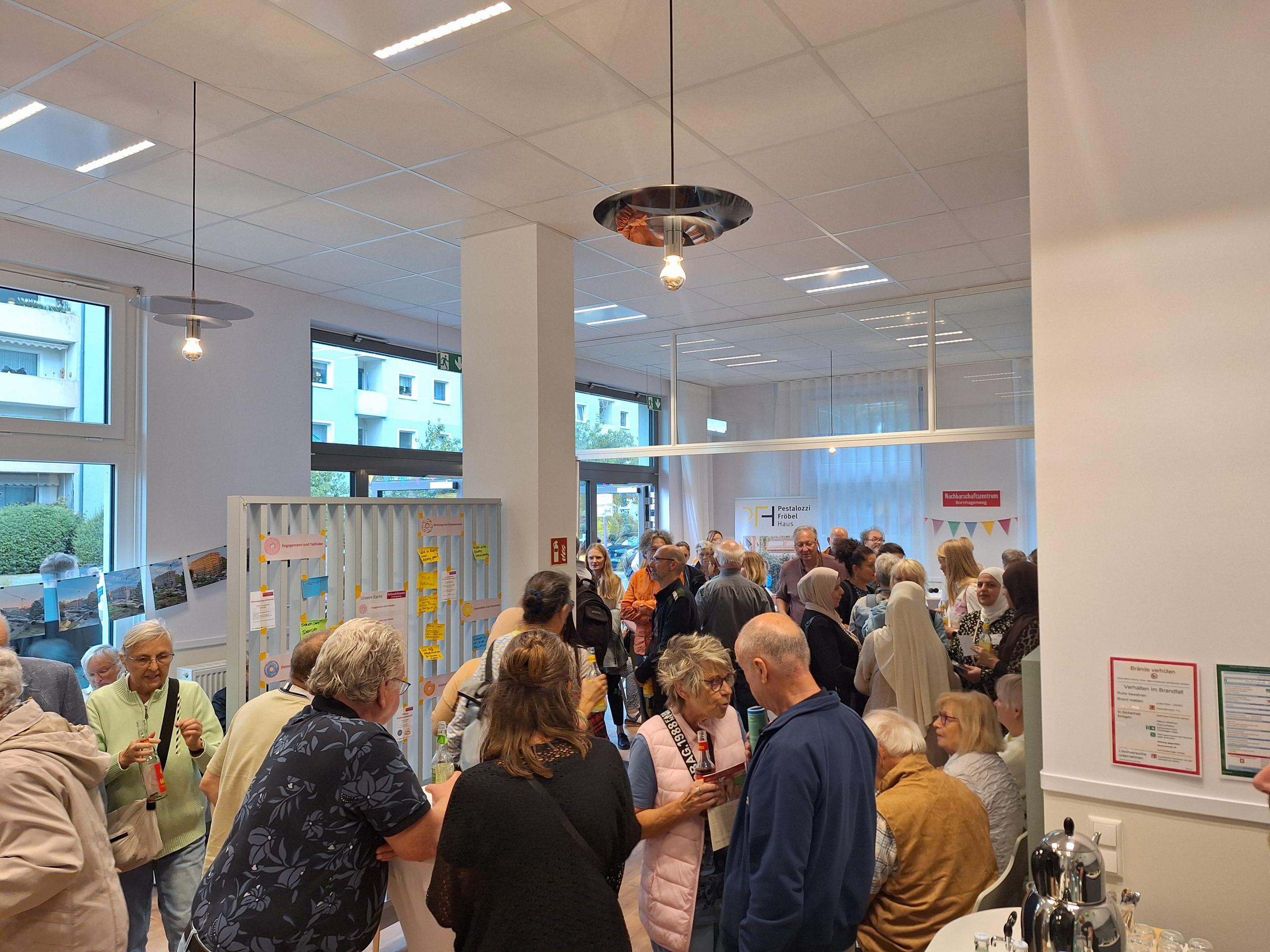 Die Räumlichkeiten waren bis auf den letzten Platz gefüllt, einige Besucher*innen mussten sogar draußen bleiben, da der Andrang einfach überwältigend war. Es war deutlich spürbar, dass das Nachbarschaftszentrum ein wichtiger Treffpunkt für die Bewohner*innen werden wird – ein Ort, an dem man sich begegnen, austauschen und gemeinsam aktiv sein kann.