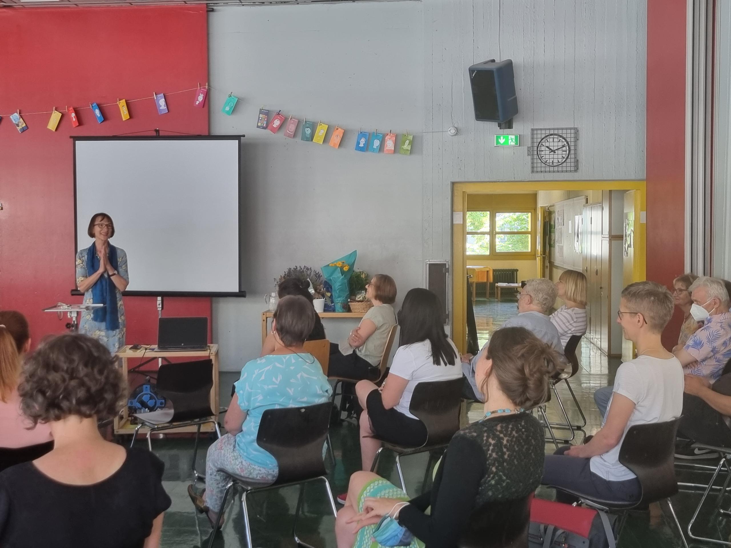 Seitdem hat sich das Familienzentrum Mehringdamm immer weiter entwickelt, ist gewachsen und ein beliebter Besucher*innenmagnet für Familien in Kreuzberg geworden. "Wir sind froh und stolz, dass das Familienzentrum Mehringdamm Teil des PFH ist", sagte der Leiter der Abteilung Kinder- und Jugendhilfe Thomas Glaw in seinem Grußwort bei der Jubiläumsfeier am 17. Juni 2022 im Gymnastikraum des Familienzentrums. "Es ist das respektvolle Miteinander, das in diesem Hause auffällt. Und zwar auch im Kleinen, Nebensächlichen", erklärte die Psychologin Dr. Annette Lepenies. Eine "Insel der Freundlichkeit und der Stabilität" und ein "Erfolgsmodell" sei dieses Familienzentrum. Auch Annette Lepenies begleitet das Familienzentrum bereits seit 15 Jahren und ist eine wichtige Beraterin vor allem bei Fragen rund um das Konzept des Hauses, den Early Excellence-Ansatz. Die Heinz und Heide Dürr Stiftung, deren Kuratorium Annette Lepenies als 2. Vorsitzende angehört, hat das Haus von Anfang an finanziell gefördert im Rahmen der Arbeit nach dem Early Excellence-Ansatz.