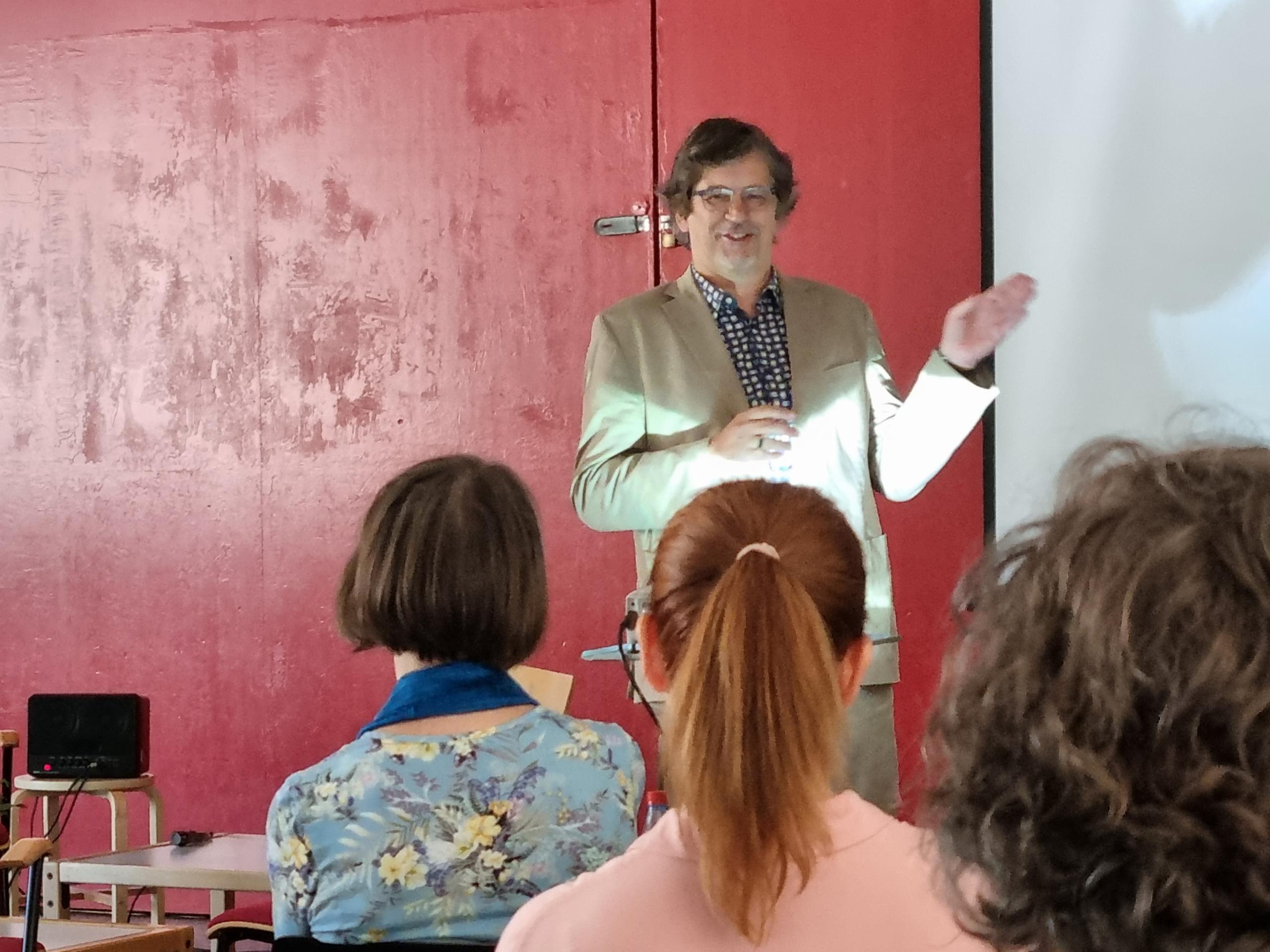 Der Direktor des Pestalozzi-Fröbel-Hauses Prof. Ludger Pesch knüpfte an dieses Thema an mit dem Schwerpunkt auf die Gestaltung von Räumen. "Man muss einiges Tun für Freundlichkeit", sagte er in seinem humorvollen Beitrag, insbesondere, wenn das Gebäude an sich keine besonders einladende Ausstrahlung hat. "Ich glaube, man nennt den Architekturstil dieses Gebäudes hier Brutalismus", so ein kurzer Blick auf das Gebäude des Familienzentrums. Wie man Räume auch unter schwierigen Bedingungen schön und inspirierend gestalten kann, erläuterte er in einem Bild-Vortrag mit Anregungen aus vielen verschiedenen pädagogischen Einrichtungen aus dem In- und Ausland.