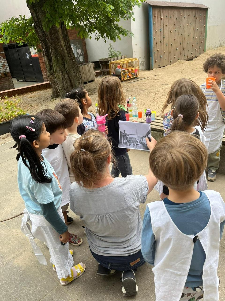 Für die Kinder aus der Kita Barbarossa ging es heute auf eine Zeitreise in die Geschichte des Pestalozzi-Fröbel-Hauses. In unserem Archiv wurden sie spielerisch an die mittlerweile 150-jährige Historie des Hauses herangeführt. Sie lernten spannende Dinge über den Campus, die Gründerinnen sowie die pädagogischen Namensgeber. Während sie den Geschichten lauschten, konnten sie – ganz vorsichtig, mit Handschuhen und Lupen, originale Fotos aus vergangenen Zeiten betrachten.