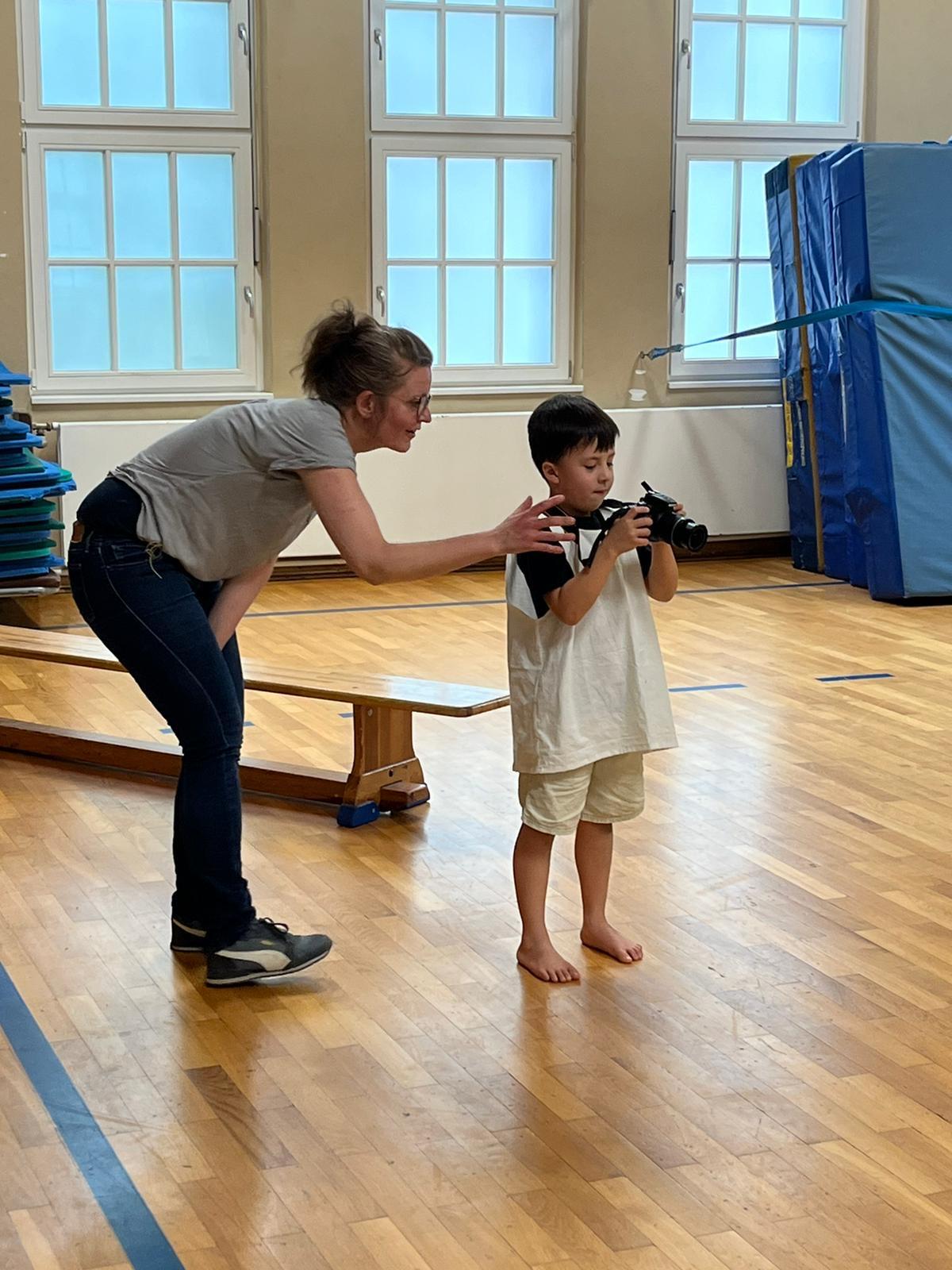 Als letzte Station ging es dann noch in die Turnhalle, um ein altes Foto aus den frühen 1900er-Jahren nachzustellen – ganz auf den Spuren der Kinder von damals.