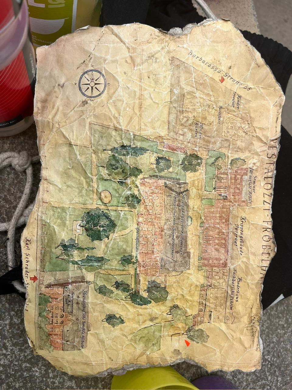 Danach ging es für die Kinder auf Schatzsuche. Startort war unsere hauseigene und ebenfalls historische Wäscherei. Wer wollte, konnte sich dort eine selbstgemachte Schürze umlegen – so wie die Kinder von damals. Mit einer Schatzkarte ging es dann von dort aus in zwei Gruppen quer über den Campus. Ob sie den Schatz gefunden haben? Die Auflösung gibt es unten in der Bildergalerie.