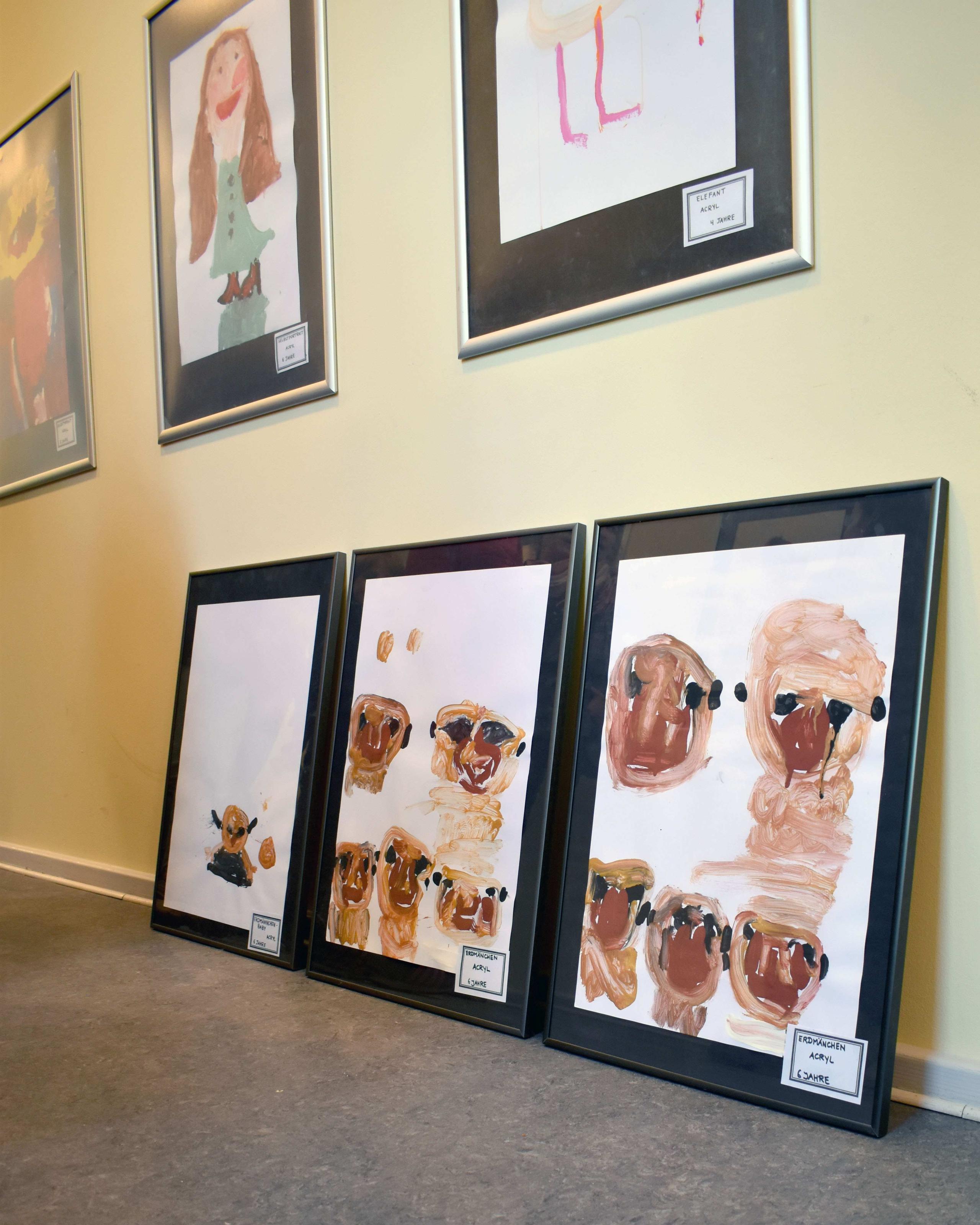 Mit großer Freude eröffneten die Kita-Kinder am vergangenen Freitag ihre Ausstellung im Haus 3 auf dem Campus des Pestalozzi-Fröbel-Hauses. Unter dem selbstgewählten Titel "MENSCHEREI MALEREI" präsentierten die jungen Künstler*innen auf drei Etagen eindrucksvolle Selbstporträts neben bunt anmutenden Monstern.