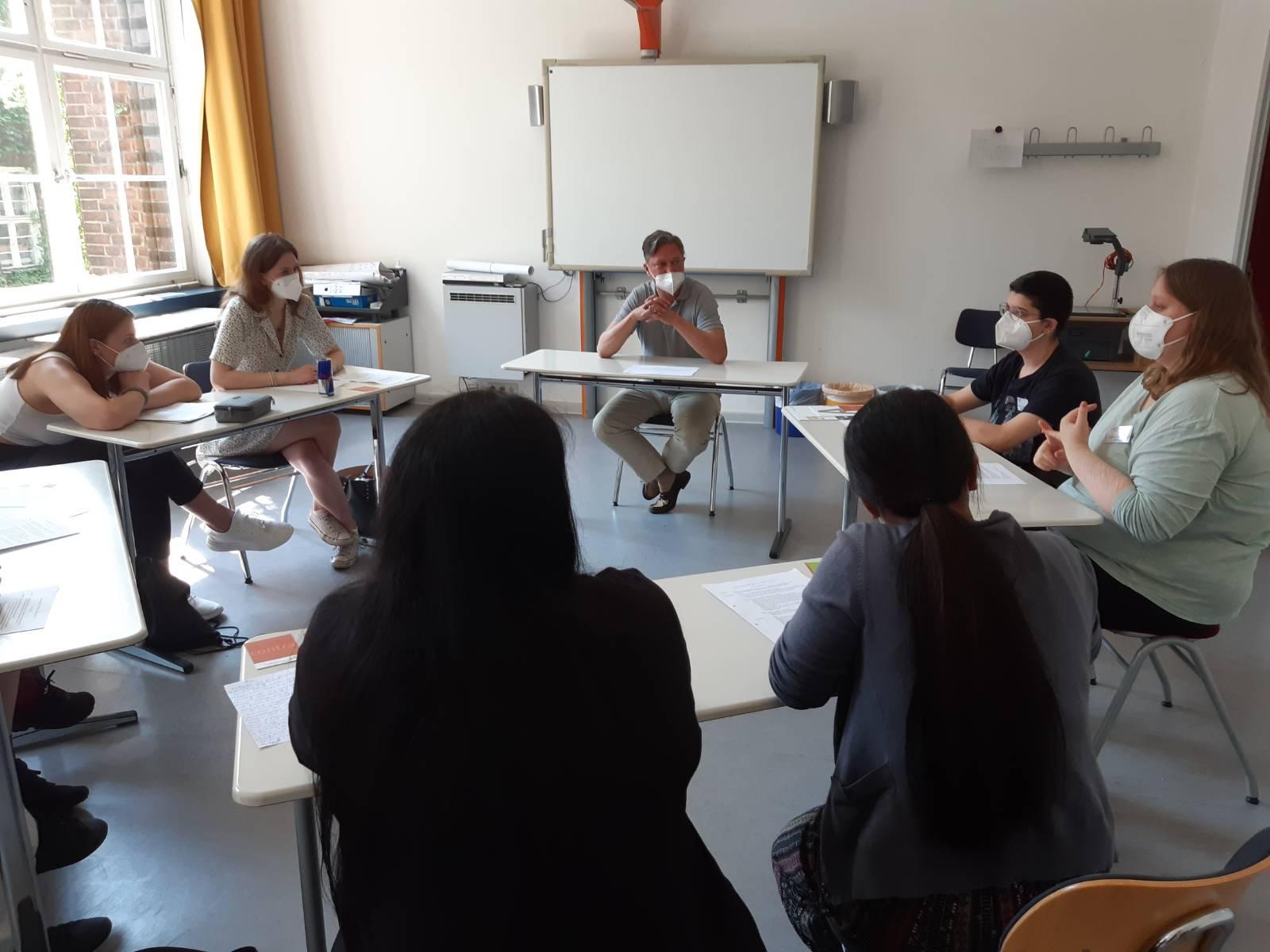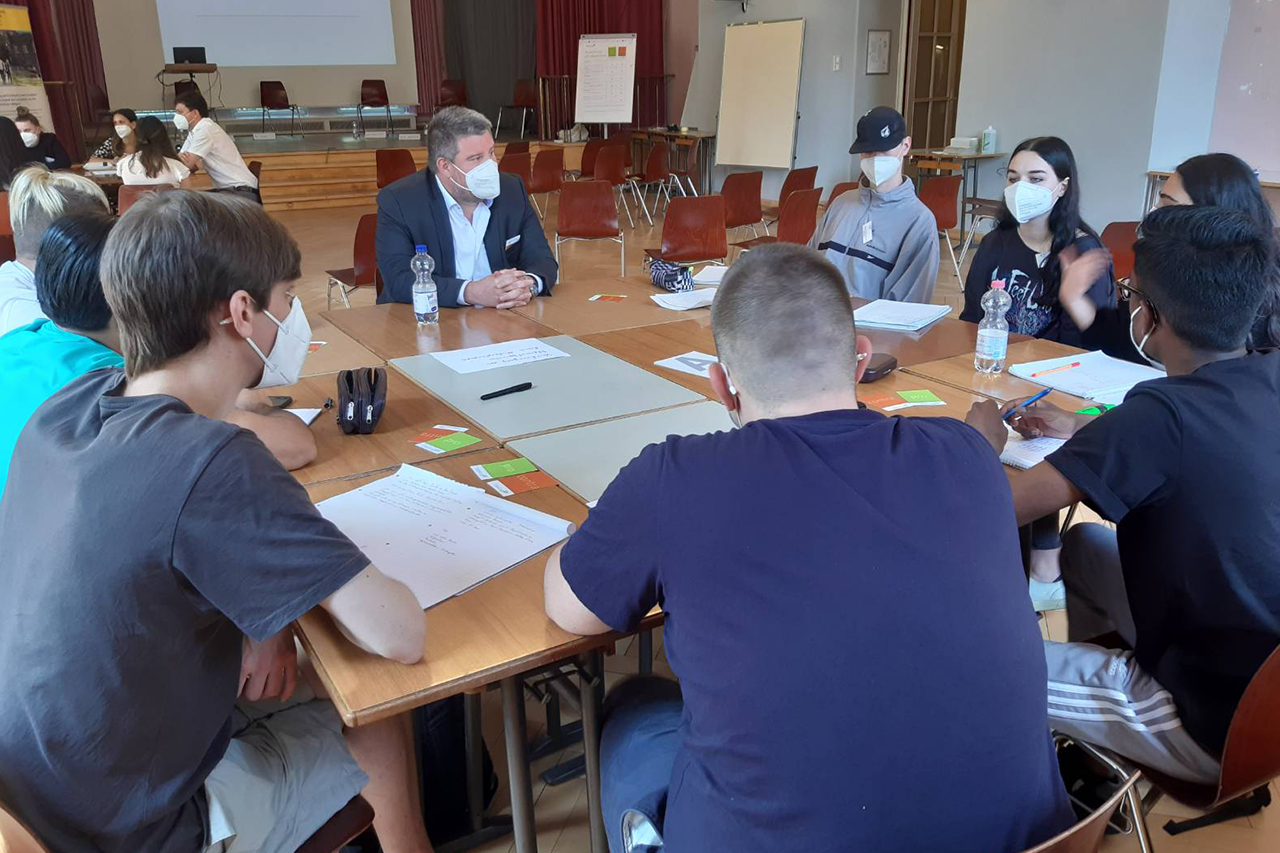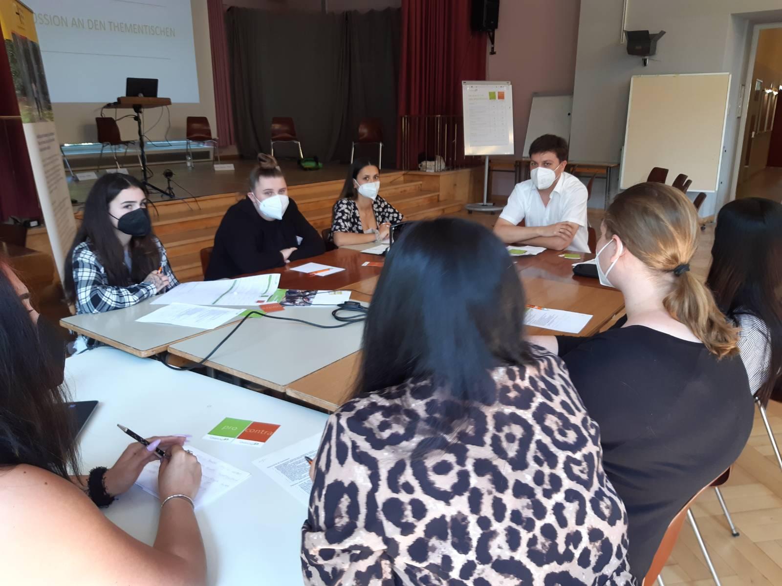 Die Schüler*innen haben sich mit Unterstützung ihrer Lehrerin Beate Lutze inhaltlich auf die Diskussionen vorbereitet und sich ihre eigene Meinung gebildet. Die Themen der am Pestalozzi-Fröbel-Haus stattfindenden Veranstaltung dialogP waren: