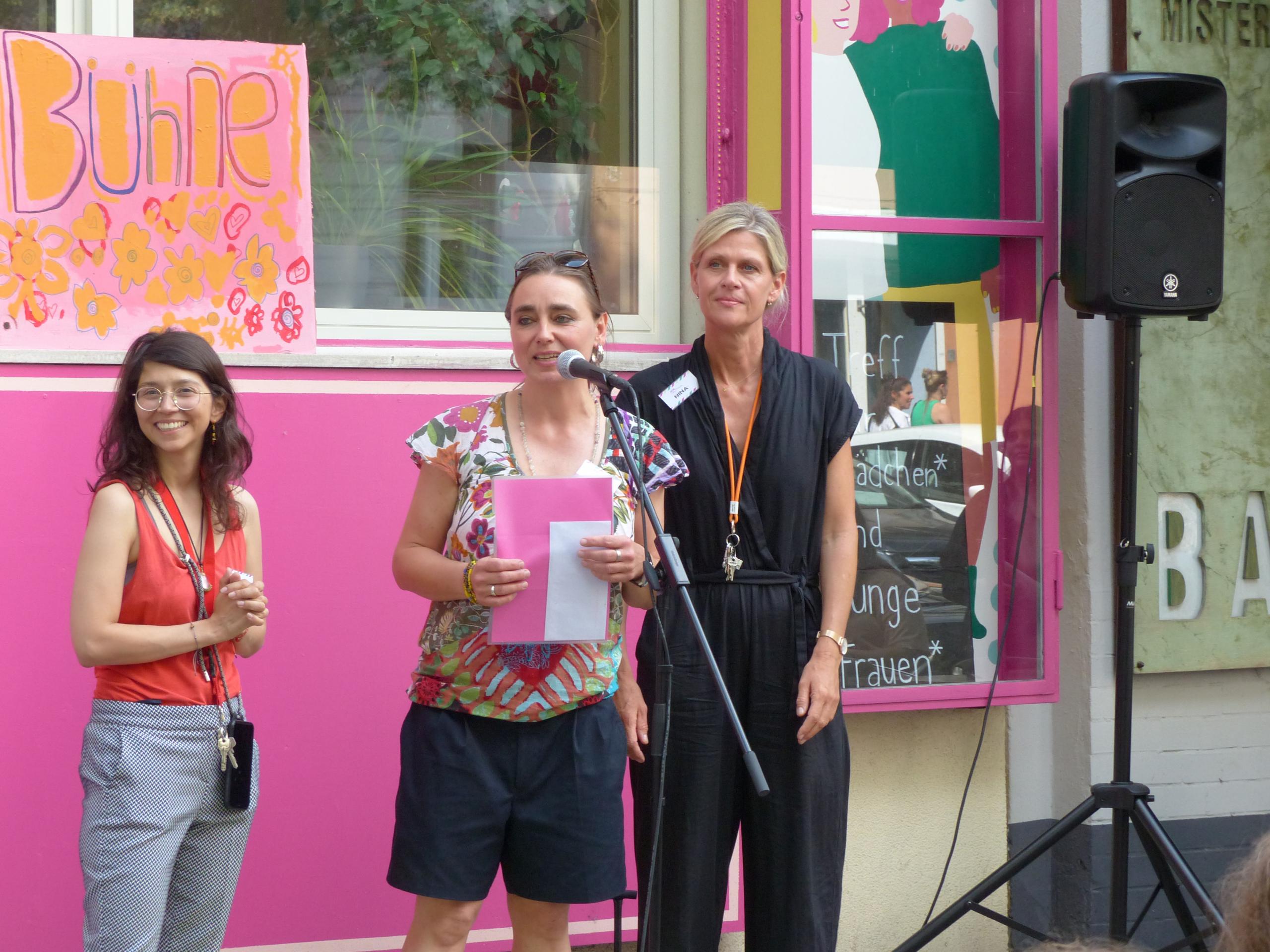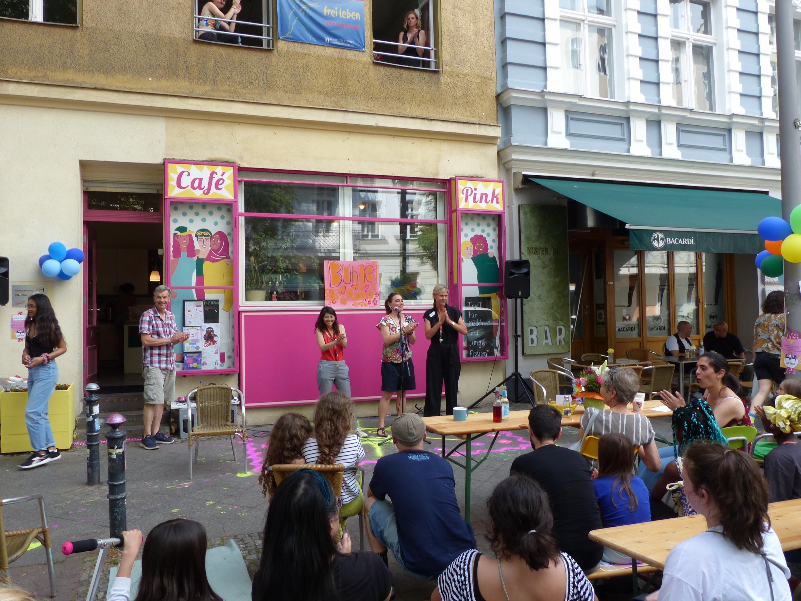 Die Fassade war extra nochmals pink gestrichen worden, Stadtradt Oliver Schworck gratulierte auf pinkem Briefpapier, es gab Musik, Tanz, feines Essen und viele viele Besucher*innen. Darunter zahlreiche Mädchen und Frauen, versteht sich, schließlich ist oder war das Café Pink für viele von ihnen wie eine zweite Heimat. Ein Ort, an dem Mädchen und junge Frauen* ihre Freizeit verbringen können, Freundinnen treffen oder Hausaufgaben machen, wo immer jemand für sie da ist. Bei der Jubiläumsparty waren natürlich auch Männer herzlich willkommen und gern gesehen ;), ein klitzekleines bisschen Parteilichkeit muss man dem Café Pink berufsbedingt verzeihen. Wir gratulieren und wünschen das Allerbeste!