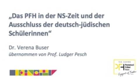 Thematisiert wurde weiterhin die Studie von Dr. Verena Buser, die Ihre Teilnahme aus persönlichen Gründen leider kurzfristig absagen musste. In der Studie mit dem Titel „Das Pestalozzi-Fröbel-Haus (PFH) in Berlin-Schöneberg 1933 bis 1945“ analysiert sie die Rolle der Einrichtung während der Nazi-Herrschaft. Die gesamte Studie wird zeitnah auf unserer Website zu finden sein. Eine Zusammenfassung ihrer Thesen durch PFH-Direktor Ludger Pesch finden Sie in diesem PDF: