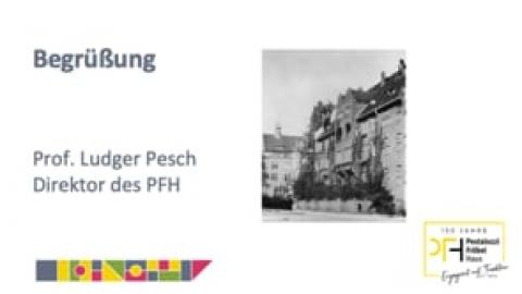 Nach der Begrüßung von PFH-Direktor Prof. Ludger Pesch gab Historiker Ralf Oberndörfer einen Einblick in die Rahmenbedingungen der Berliner Bildungslandschaft (Schwerpunkt Kindergärten) zur damaligen Zeit und analysierte Reaktionen von Verwaltung und Trägern auf die neuen Vorgaben nach 1933. Dabei nannte er Beispiele für das unterschiedliche Verhalten einzelner Entscheidungsträger*innen, um deutlich zu machen wie Handlungsspielräume auf verschiedene Weise genutzt werden konnten. Er ordnete sie fünf Kategorien zu: „sich dumm stellen“, „eigene Regeln entwickeln“, „Dienst nach Vorschrift“, „Eifer“ und „freie Radikalisierung“.