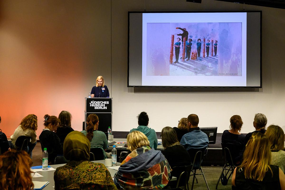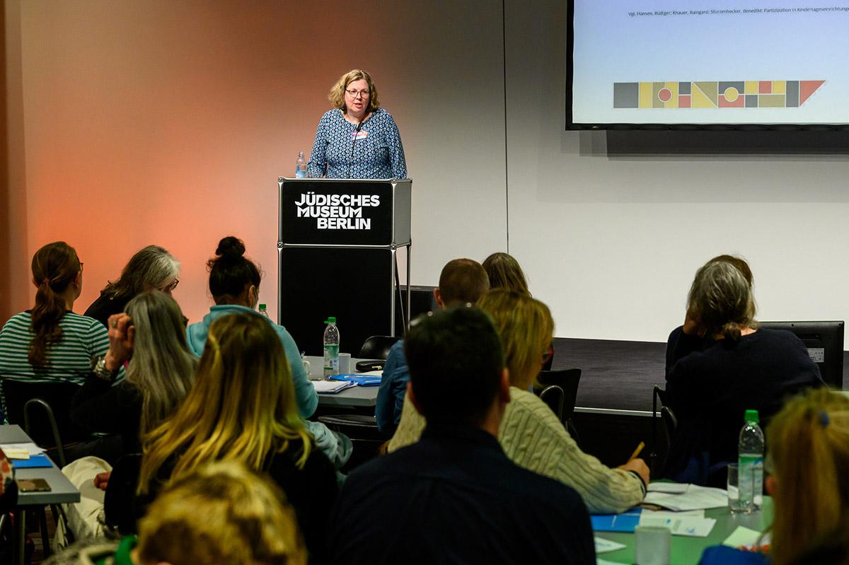 Auch der Vortrag „Kinder am Steuer! Wie kann Partizipation und Engagement von Kindern gefördert werden? Demokratiebildung in der Kita“ von Daphne Wischhöfer, Stellvertretende Leitung der Kita Haubachstraße / Pestalozzi-Fröbel-Haus, geht auf die Beziehung zwischen Kind und Museum ein. Je mehr sich Mitbestimmung der Selbstbestimmung annähert, desto eher entstehe ein Gefühl der Zugehörigkeit für die Kinder. Denn Kinder wollen Teil vom Museum sein. Das große Potenzial von partizipativen Methoden im Museum ist nicht nur, dass sie neue Besucher*innengruppen erschließen, sondern dass sie auch als Vehikel der Demokratiebildung funktionieren können. Durch die Erfahrung und das Lernen über demokratische Methoden könnten außerdem nicht nur Kinder, sondern auch Erwachsene für die Gesellschaft profitieren.