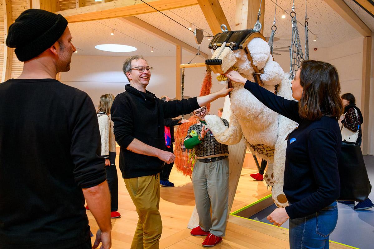 Diese Formate dienten dazu, das vormittags in Vorträgen erläuterte Wissen erfahrbar zu machen. Denn Kinder erleben den Museumsraum ganz anders als Erwachsene und unsere Aufgabe als Vermittler*innen ist es, dies als Potenzial zu betrachten: Kinder erfahren Ausstellungen mit allen Sinnen – sie wollen fühlen, riechen, laufen, spielen. Dies wurde auch deutlich in den Aufträgen des Kinderbeirats vom ANOHA an die Erwachsenen: Sie forderten die Erwachsenen dazu auf, im Bällebad zu spielen, die Tiere auf der Arche Noah zu füttern und dafür zu sorgen, dass die großen Tiere auch endlich einen Platz auf der Arche bekommen. Hauptsache, die Erwachsenen stehen nicht herum und gucken nur zu, wie sie es normalerweisetun. Iman Reimann, Pädagogische Leitung und Vorsitzende der KiTa Regenbogen-Kidz e.V., erläuterte die unterschiedlichen Weisen, wie Kinder Museumsräume erfahren in ihrem Vortrag „Kids in the house. Sprache – Bewegung – Anderssein“. Dabei wird unter anderem deutlich, dass – anders als für Erwachsene selbstverständlich – Sprache kein beliebtes Mittel der Kommunikation für Kinder ist. Auch geht es den Kindern im Museum nur selten um den Erhalt neuen Wissens, sondern um die Erfahrung in einem neuen Raum. Um dies positiv zu gestalten ist es wichtig, dass das Museum zum Freund wird, also von den Kindern als Ort wahrgenommen wird, in dem sie willkommen sind, sich wohlfühlen und an den sie gerne wiederkommen. Denn Kinder sind nicht die Besucher*innen von Morgen, sie sind die Besucher*innen von Jetzt!