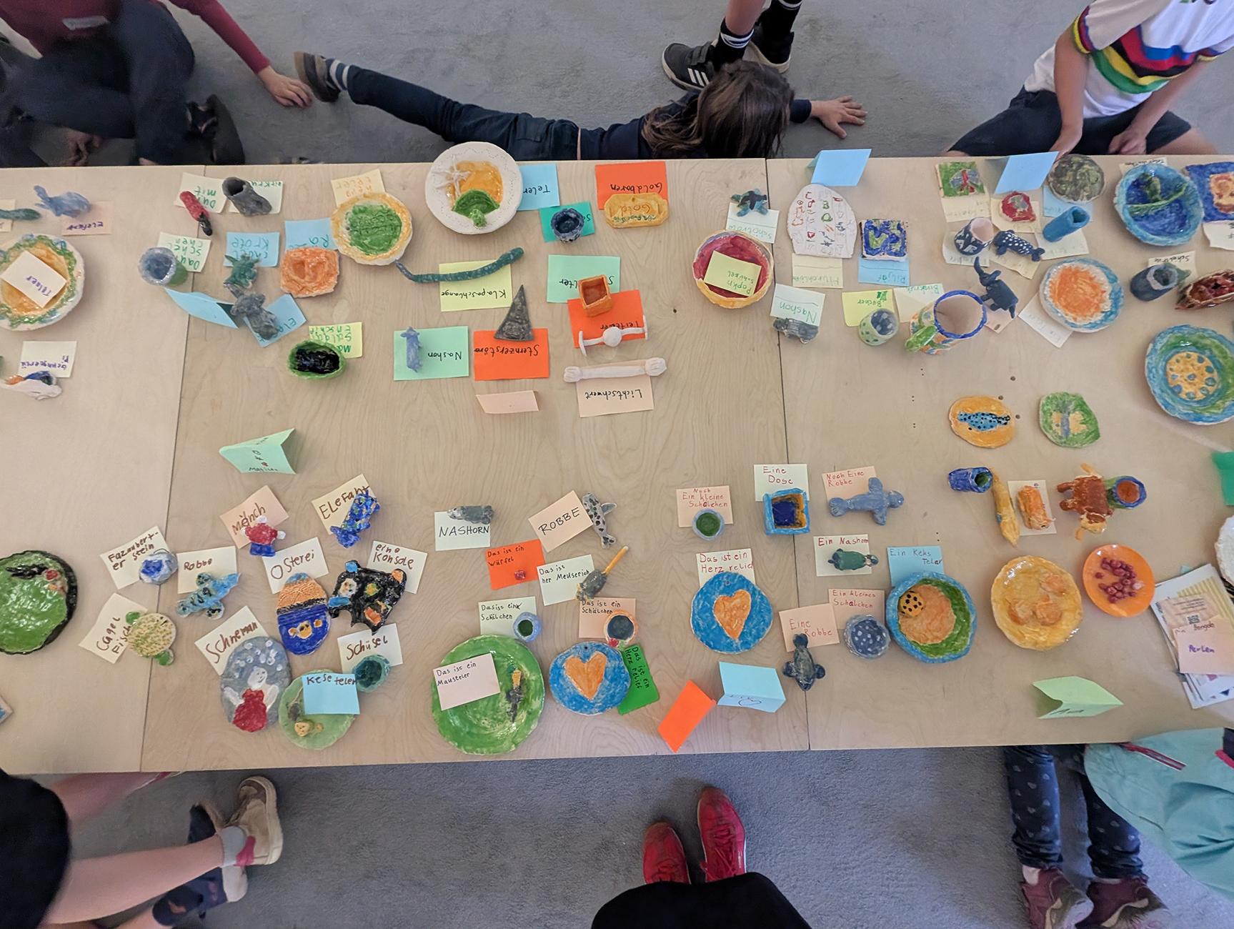 Am 17. Juli 2025 fand die die feierliche Abschlussausstellung im Bröhan Museum statt. Sichtbar wurden bunte Keramiken, aus deren Details und Geschichten sich ein fantasievolles Universum bildete, das die Kinder während des Aufbaus im Ausstellungsraum inszenierten. Zwischen den Kunstwerken versteckten sich Computer spielende Elefanten, ein grinsender Bundeskanzler, Tiere mit und ohne Beine und noch viel mehr.