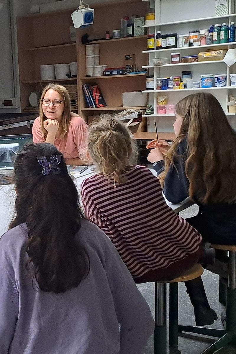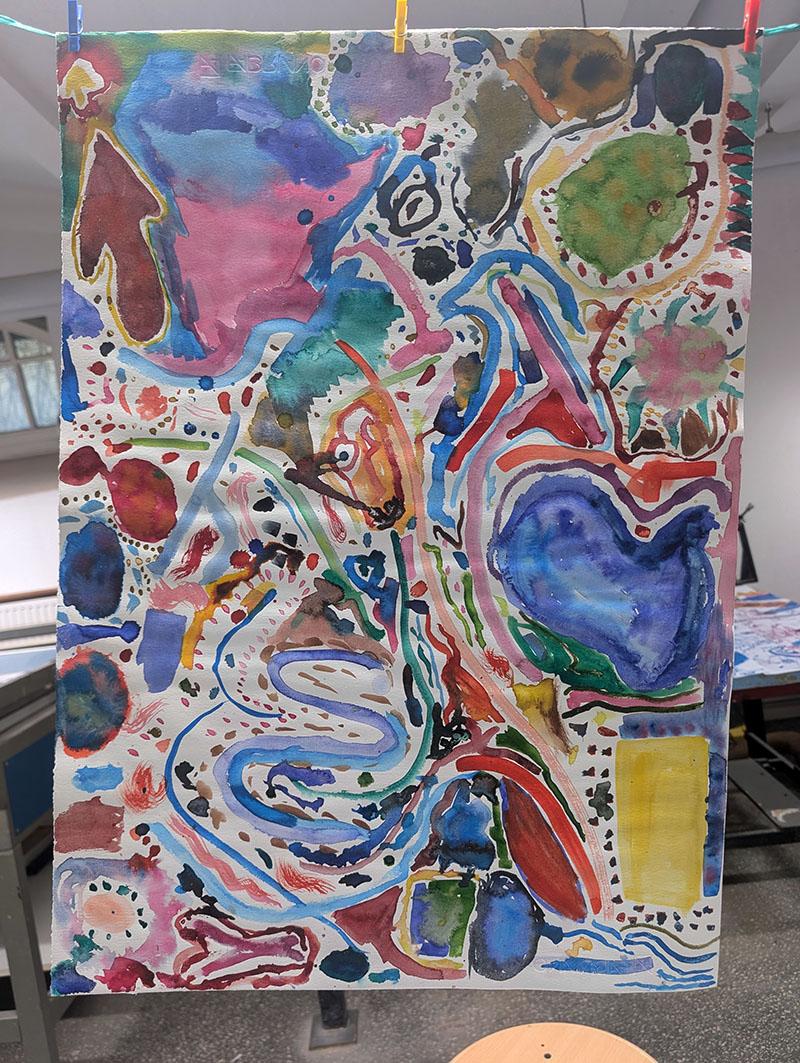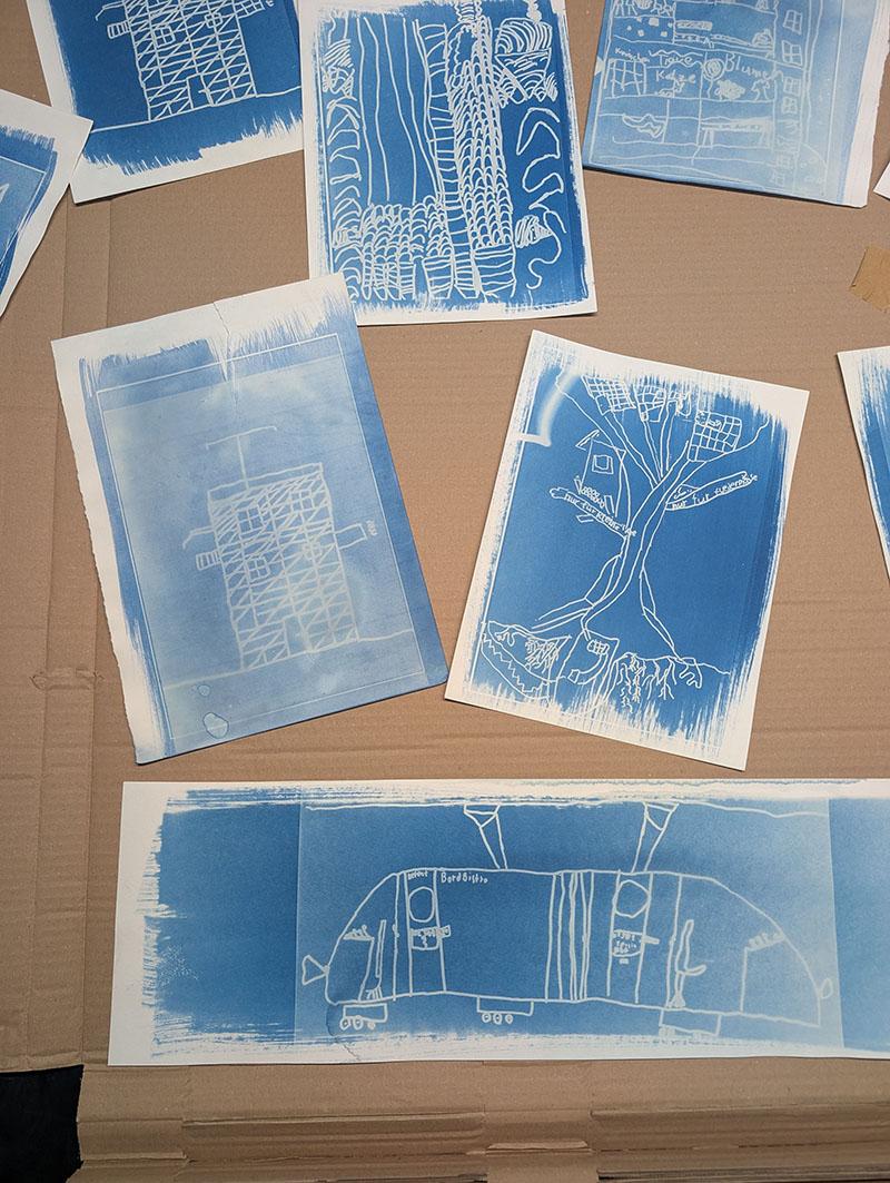 In der Siebdruckwerkstatt der Fichtelgebirge-Grundschule entstanden persönliche Skizzensammlungen, gemeinschaftliche Malereien und großformatige Drucke, die die Gedanken und Assoziationen der Kinder wiederspiegeln. Siebdruck, Cyanotypie und Schrift/Text dienten als künstlerische Mittel, mit denen die Kinder über Grenzen und deren Auswirkungen auf Menschen nachdachten.