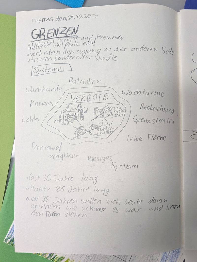 Visuelle und narrative Ausdrucksformen ergänzten sich im Projekt und ermöglichten den Kindern aus verschiedenen Perspektiven die Geschichte und ihren ehemals durch Grenzen geteilten Sozialraum wahrzunehmen und komplexe Zusammenhänge zu reflektieren und zu verweben.