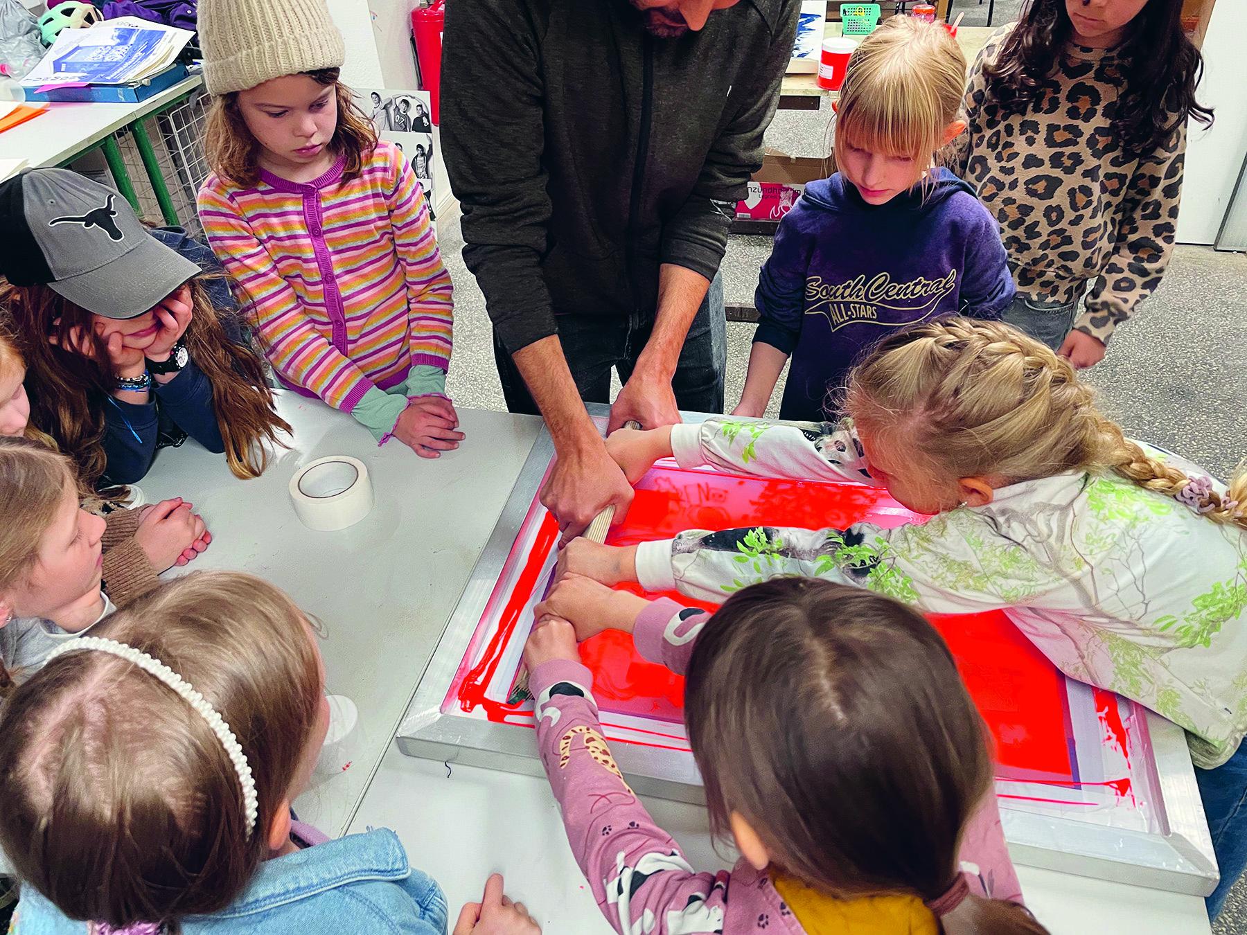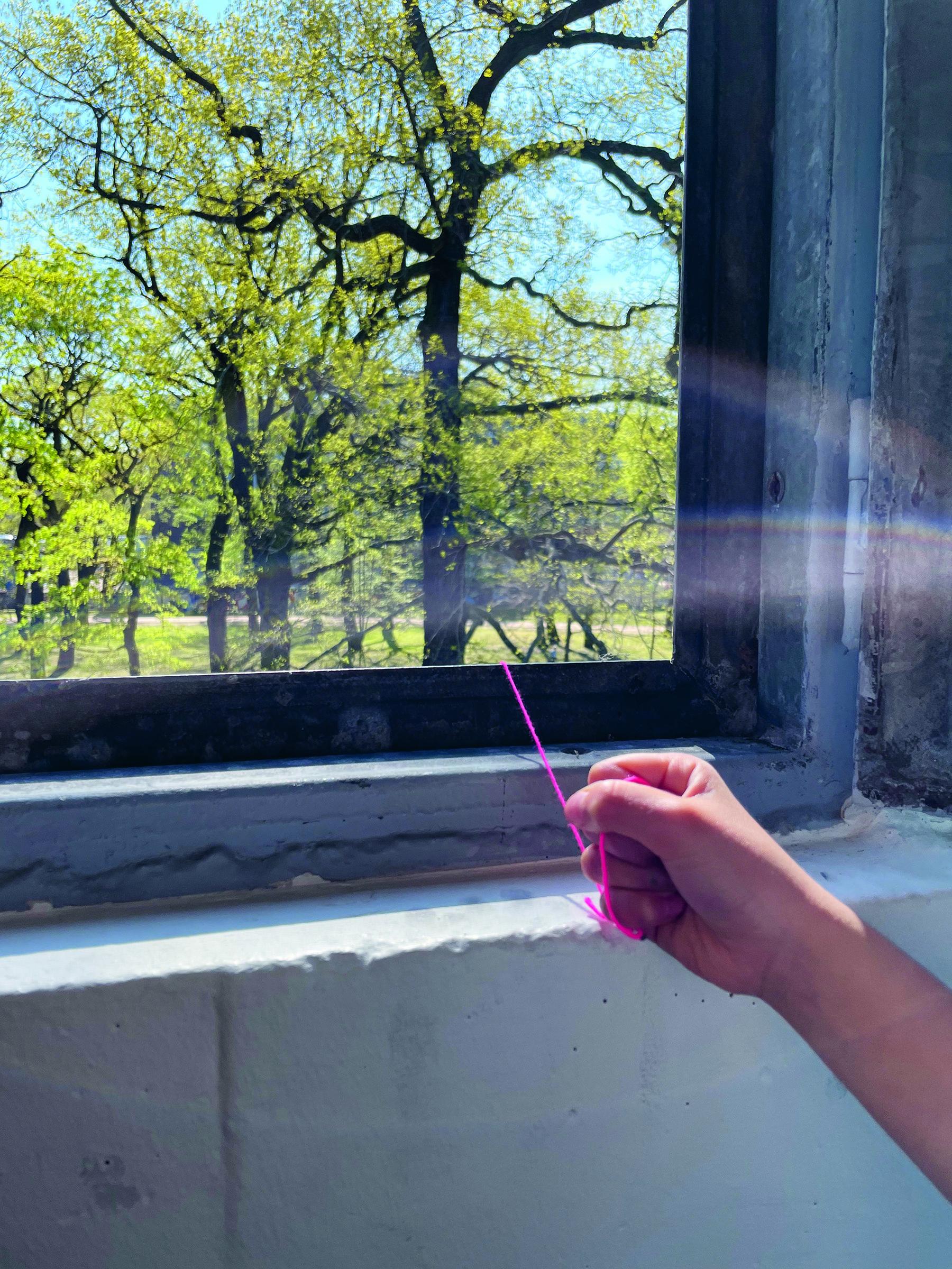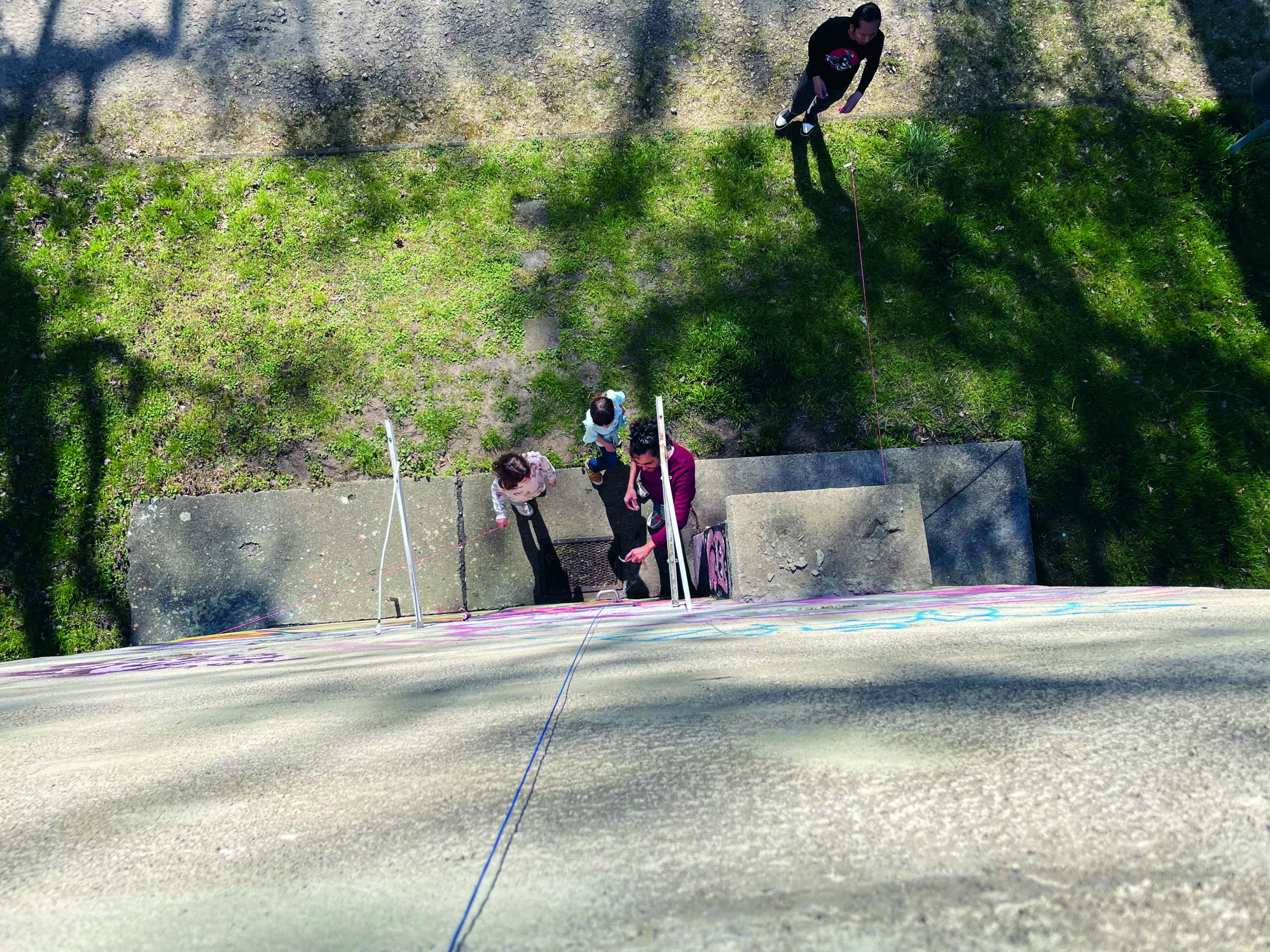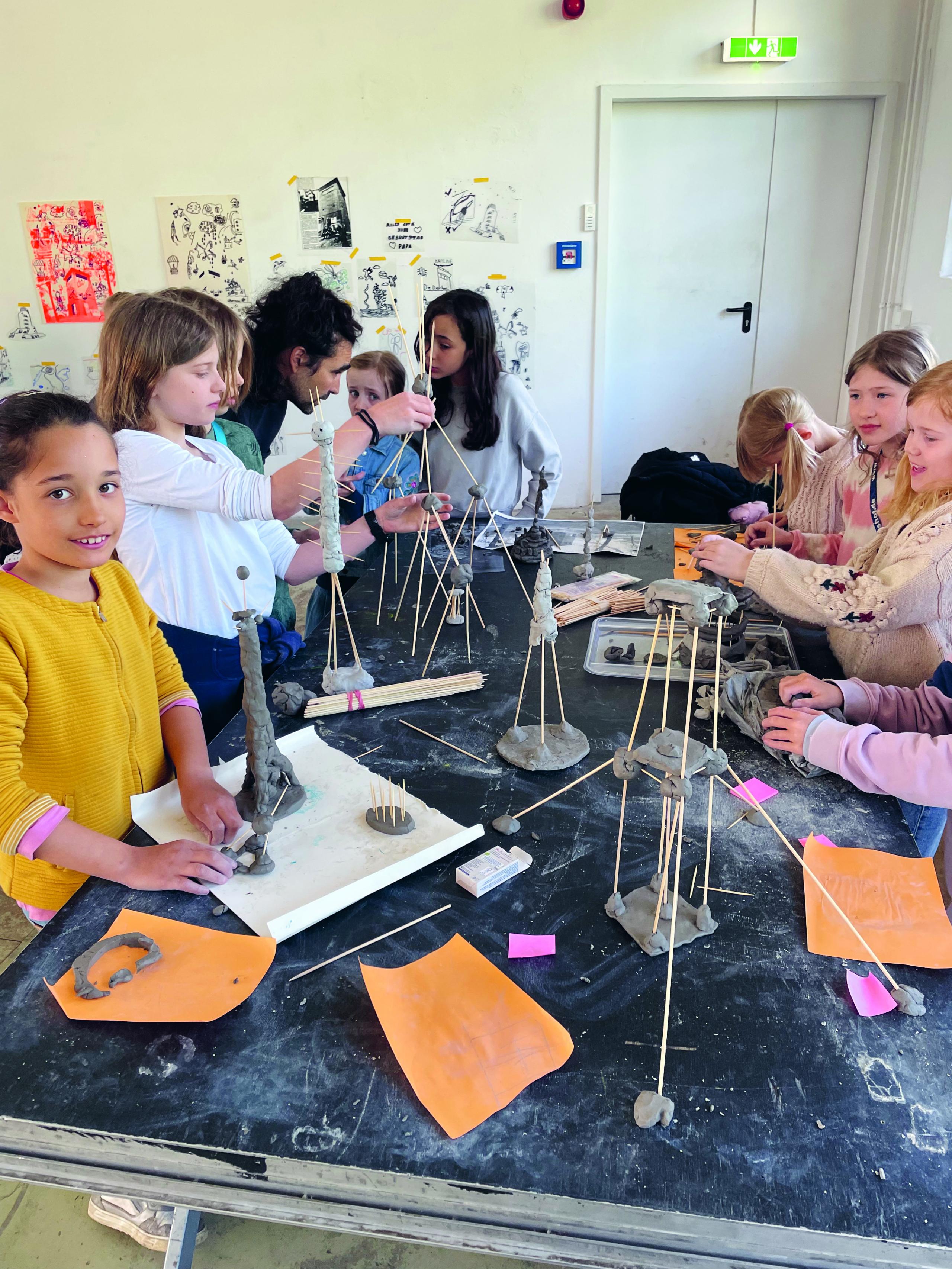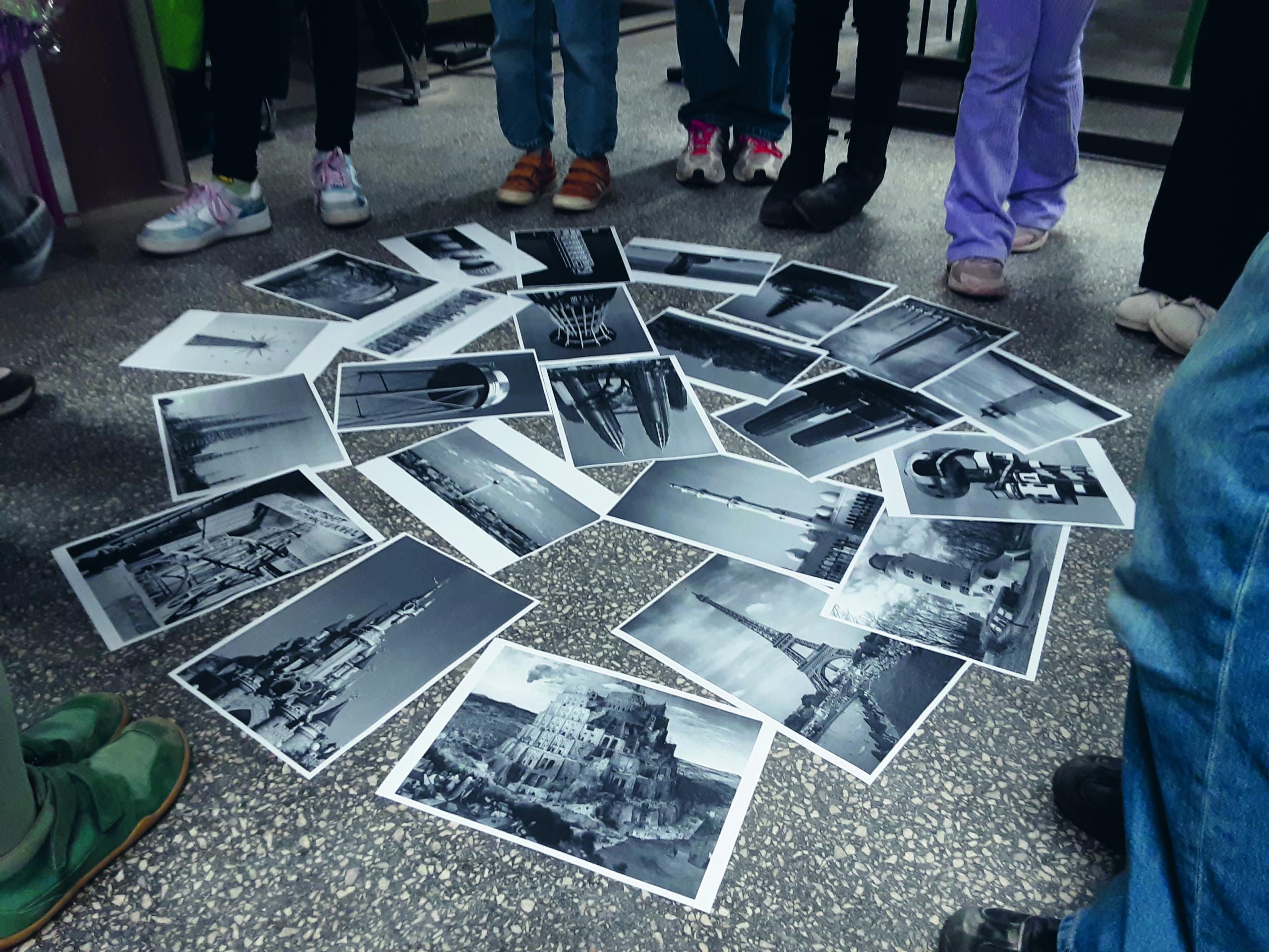 Kinder aus der Ganztagsbetreuung der Fichtelgebirge-Grundschule haben im Turm und rund um den Turm gesammelt, gezeichnet, gemalt und in der Duckwerkstatt der Fichtelgebirge-Grundschule eigene Motive gedruckt – begleitet von den Künstler*innen Irina Novarese und Diogo deCalle.