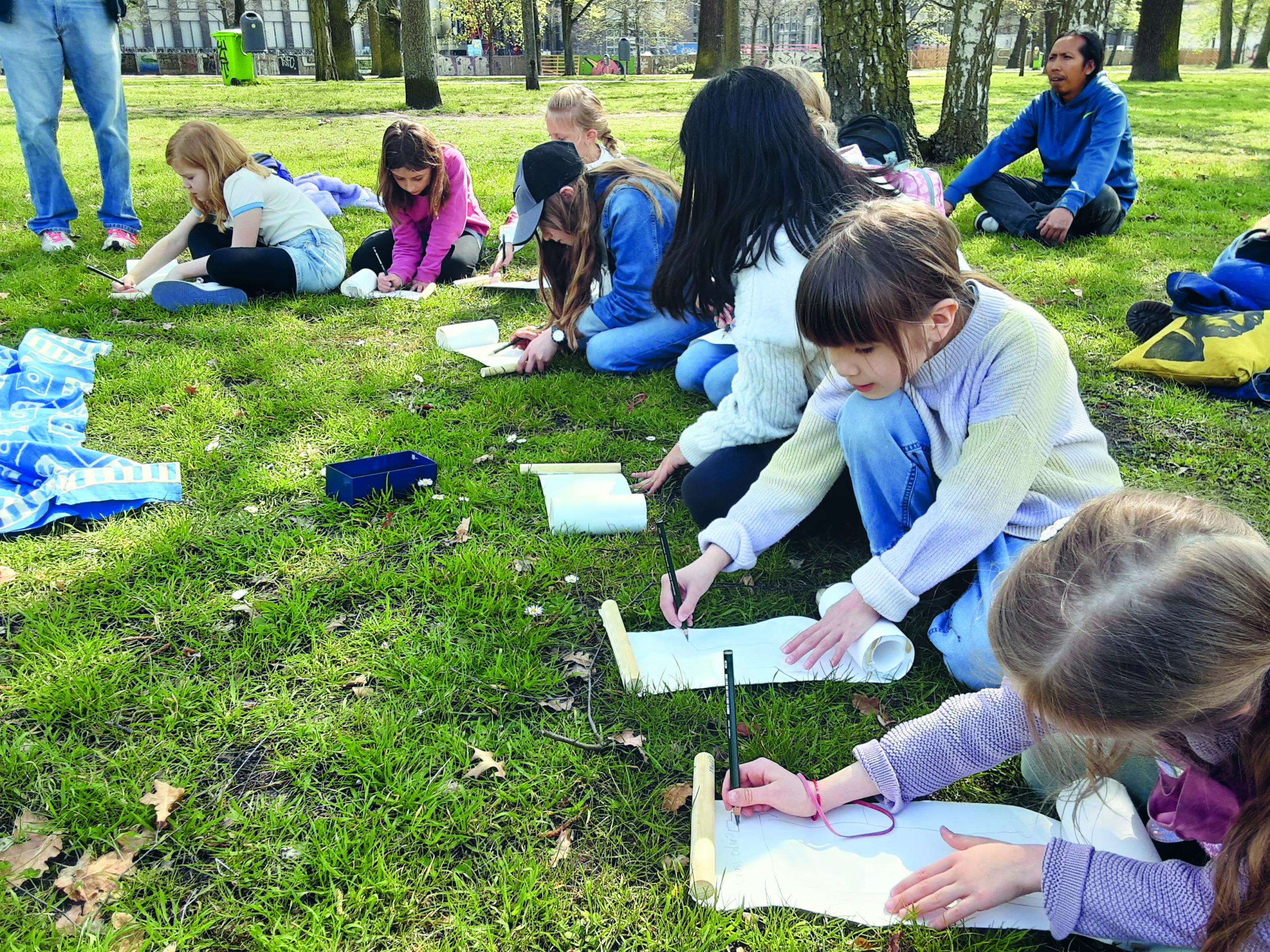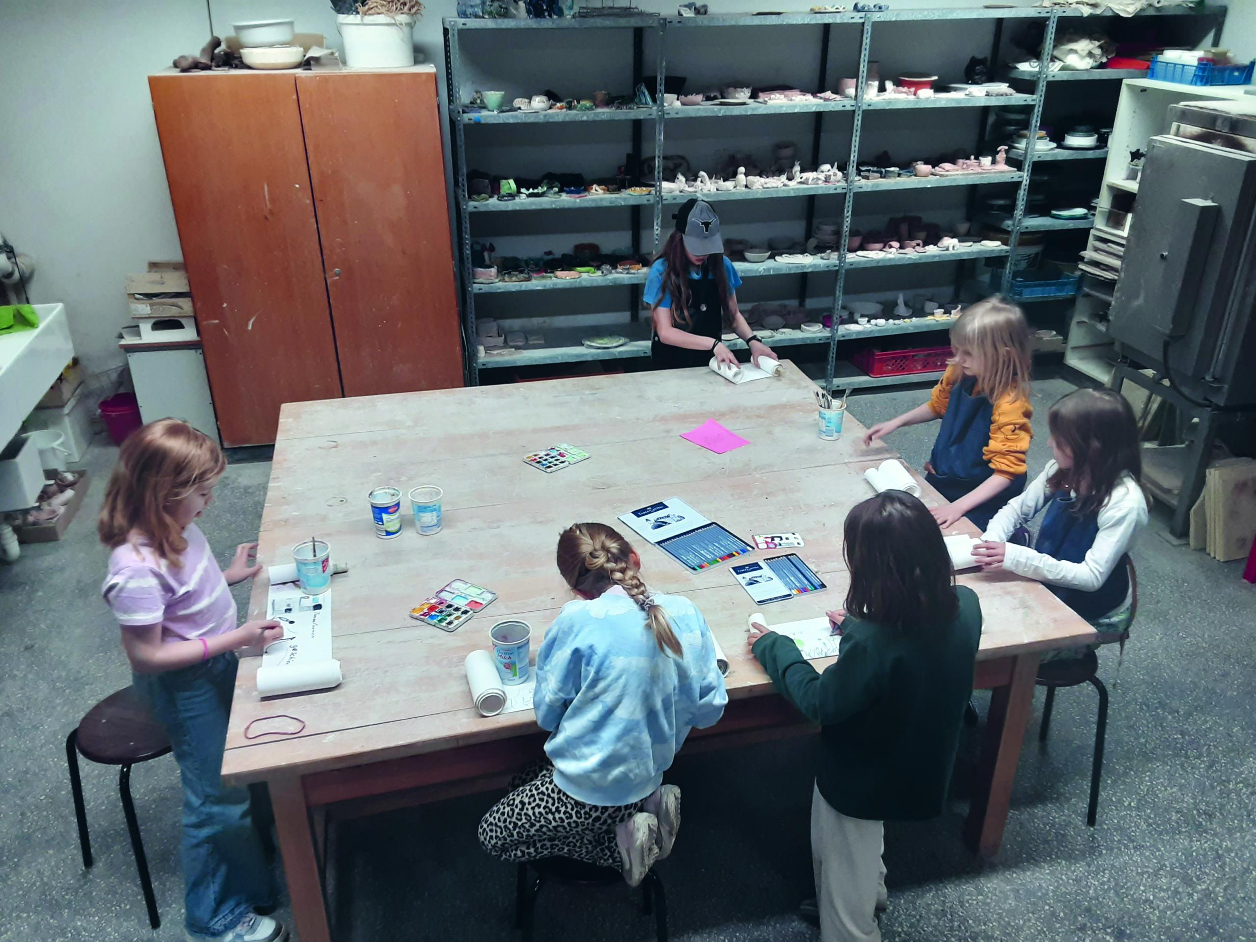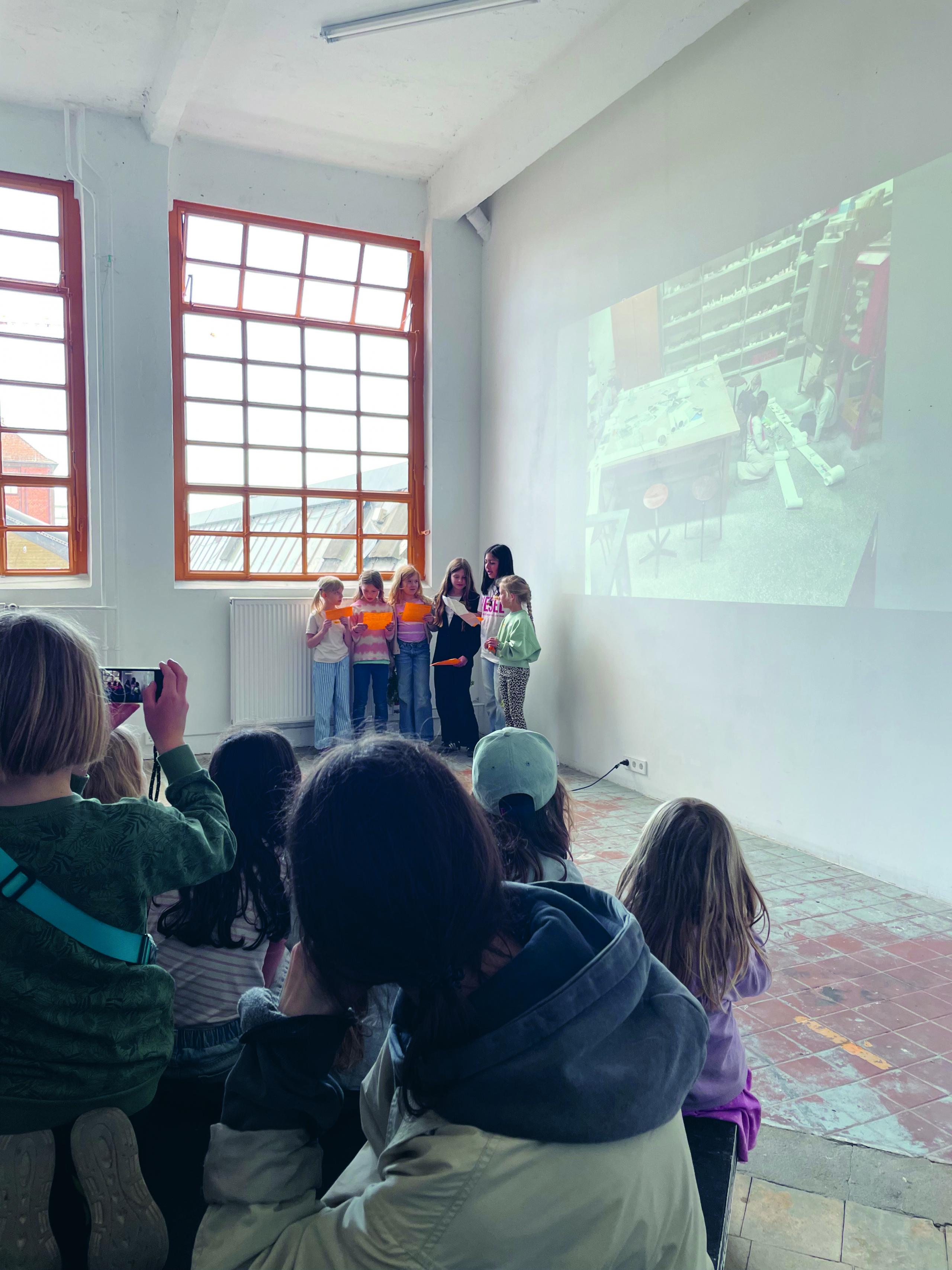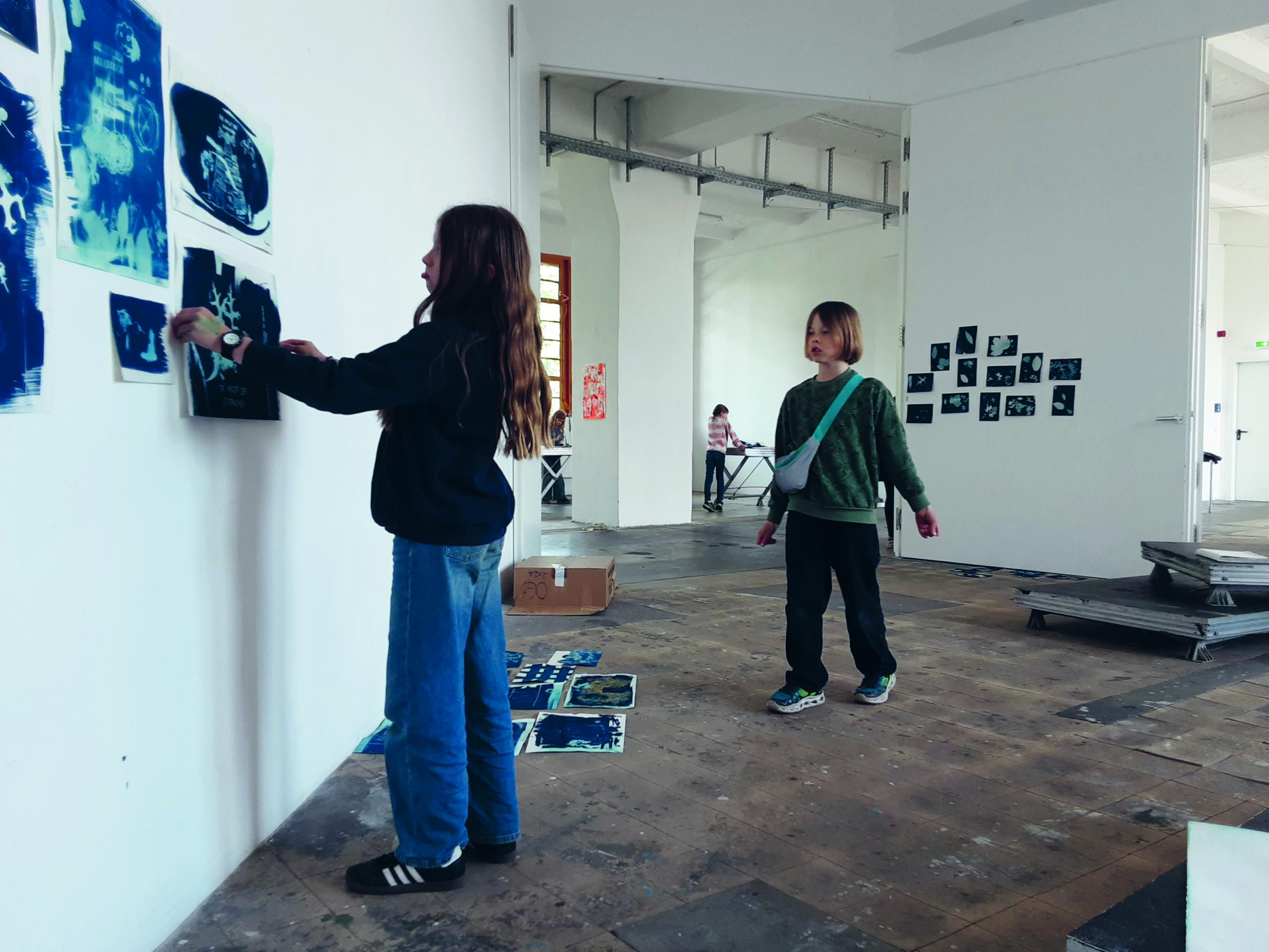 Bei der Abschlussausstellung am Dienstag, den 6. Mai 2025 im Atelierhaus Flutgraben in Berlin Kreuzberg präsentierten die Kinder die Fülle ihrer künstlerischen Arbeiten. Zu sehen waren die siebzehn Papier-Rollen, auf denen alle ihren zehntägigen künstlerischen Arbeitsprozess dokumentierten. In Form von Zeichnungen, Malerei und Text wurden den Betrachter*innen spannende Einblicke in ihre Gedankenwelt ermöglicht.