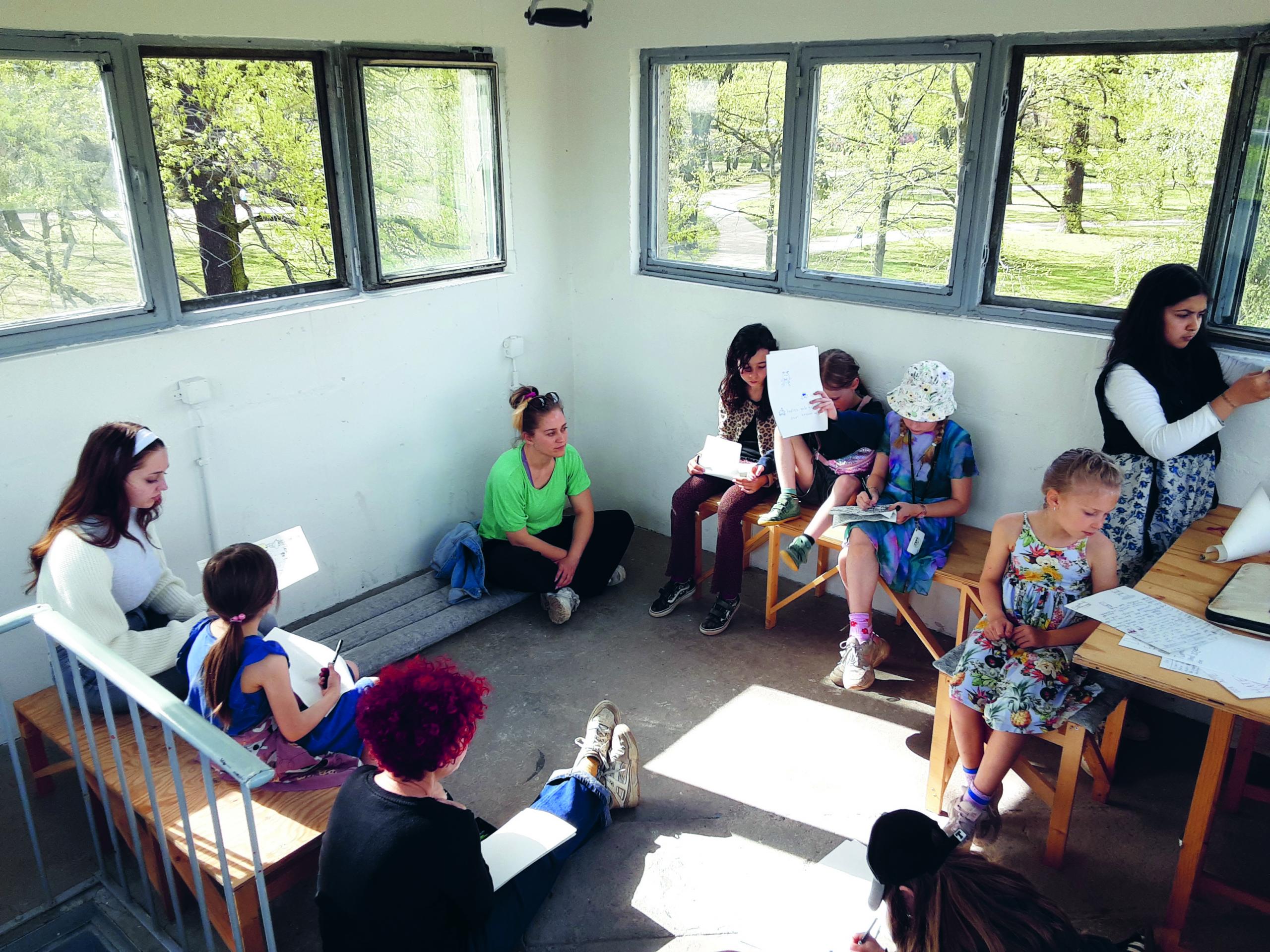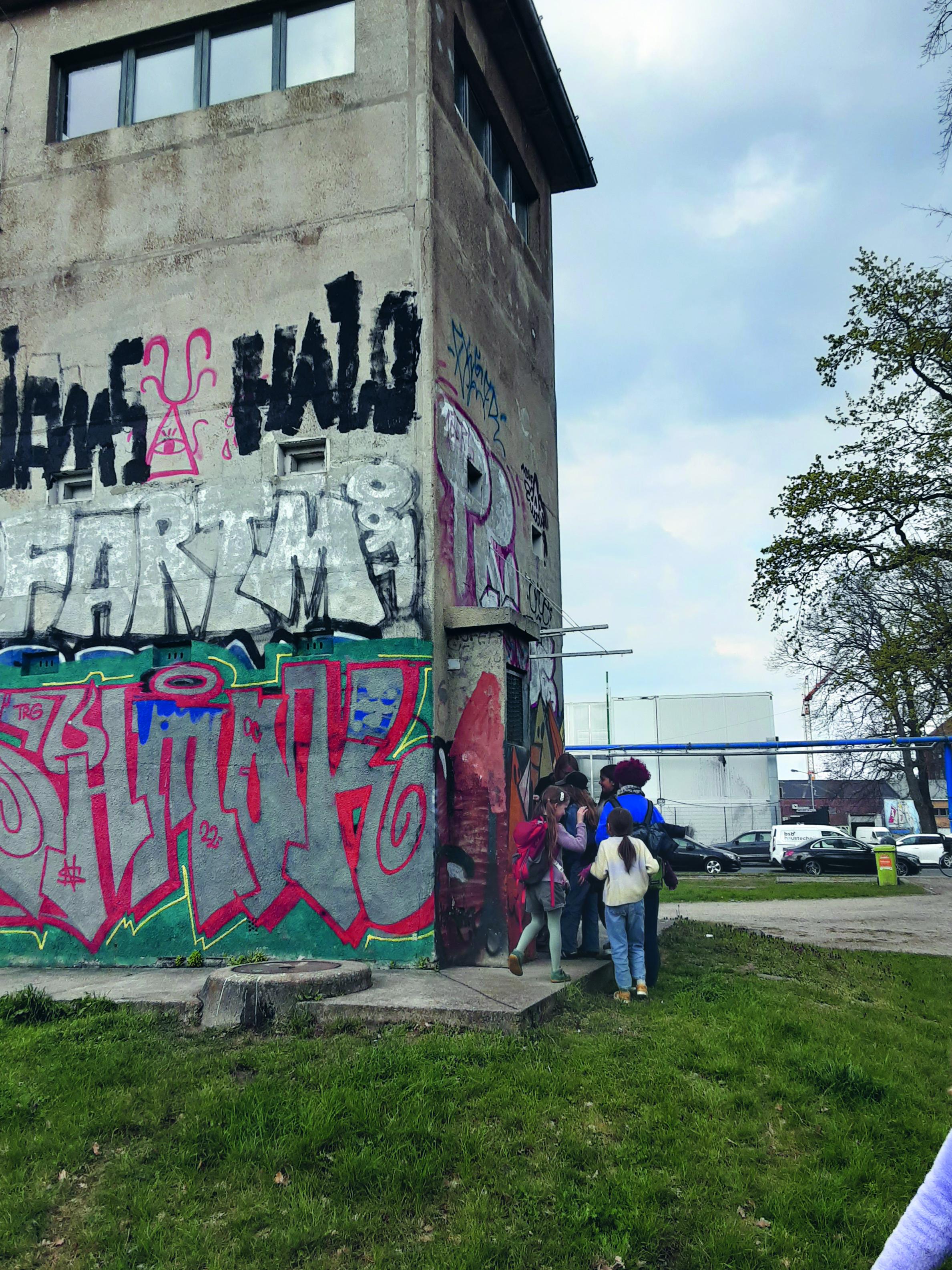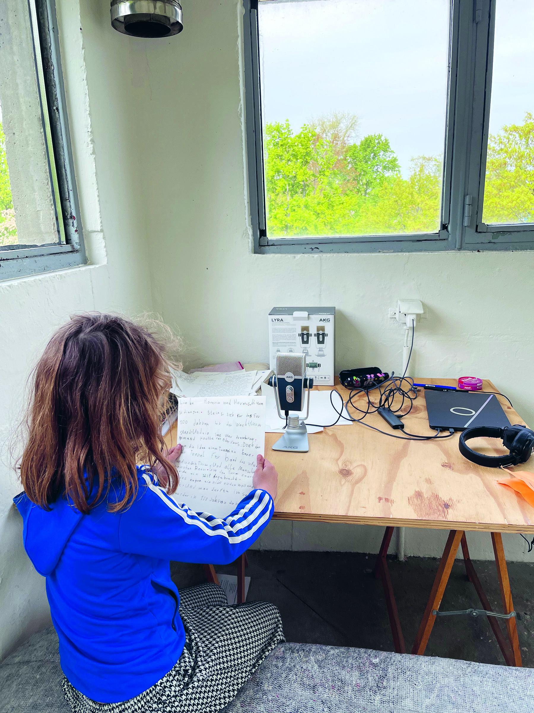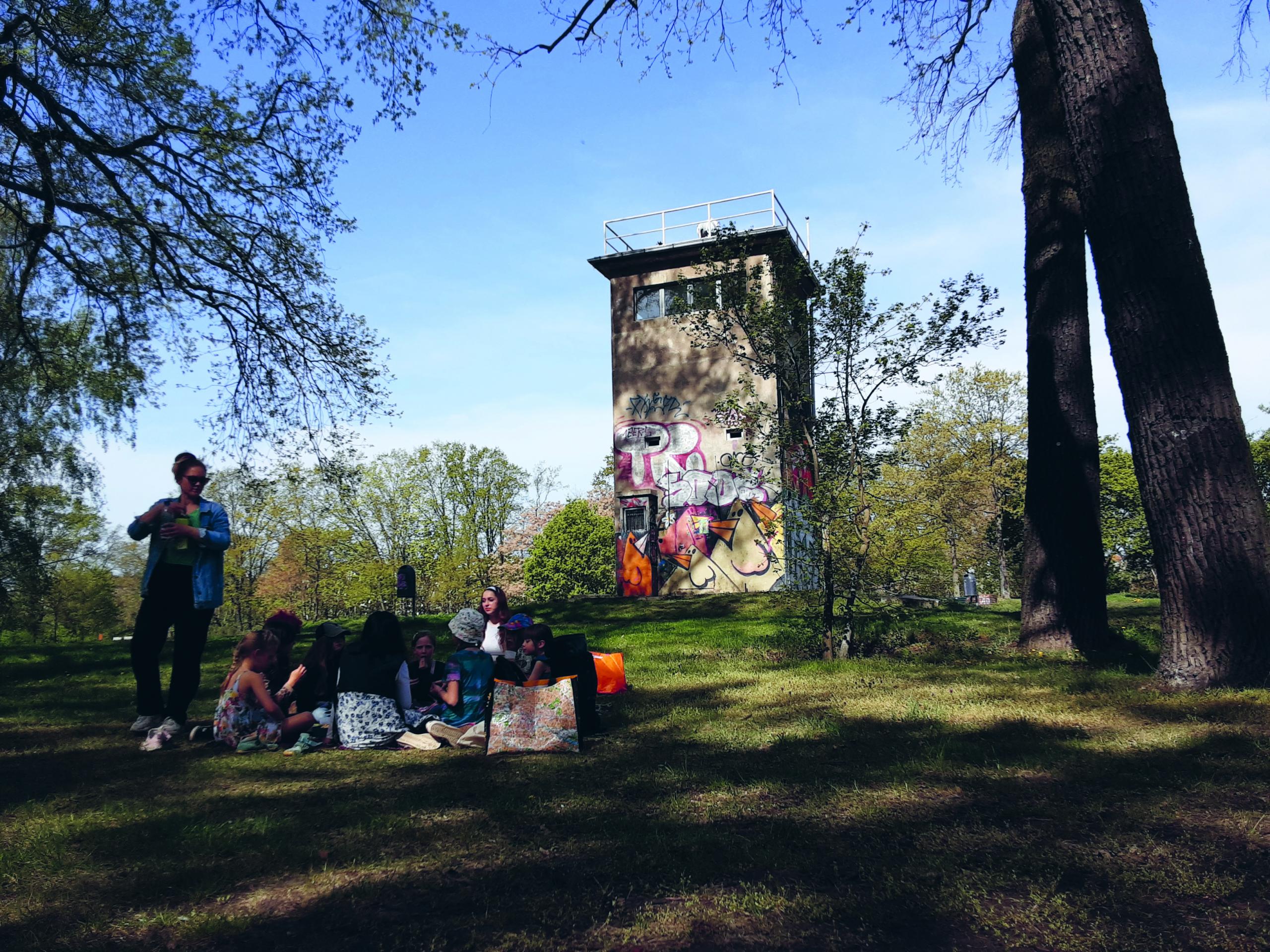 Von der Kultursoziologin und Mitglied von The Watch, Franziska König-Paratore, lernten sie beeindruckende Geschichten über den ehemaligen DDR-Wachturm im Schlesischen Busch kennen. Die jungen Künstler*innen erfanden inspiriert davon neue fiktive Geschichten, die von ihnen aufgenommen wurden.