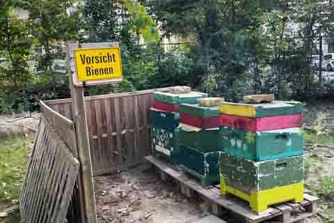 Die Bienenpflege findet im Rahmen von Sachkunde statt. Eine JÜL-Klasse entwickelte dabei so große Begeisterung, dass sie ihr "Klassenwappen" in eine Biene umwandelten. Susanne Munk und Arezki Keddam kauften der Klasse daraufhin ein eigenes Bienenvolk samt Königin, das jetzt allein von der JÜL-Klasse gepflegt wird. Die Kinder füttern die Bienen mit einer Zuckerwasserlösung als Honigersatz, sie prüfen unter Anleitung, ob die Bienen von Milben oder anderen Krankheiten befallen sind, sie schaben den Honig aus den Waben und füllen ihn in die Gläser. Im Winter werden die Rahmen sowie sonstiger Zubehör gebaut, aus dem Bienenwachs dürfen die Kinder Kerzen ziehen.
