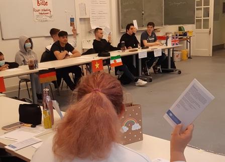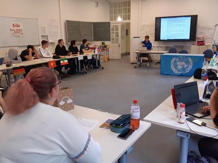 Die BFS21b veranstaltete als Projekt der Deutschen Gesellschaft für die Vereinten Nationen eine UN-Sicherheitsratssitzung. Die Schüler*innen mussten sich im Vorfeld mit der politischen Haltung und wirtschaftlichen Abhängigkeit der einzeln Mitgliedsstaaten beschäftigen, um als Vertreter*in dieses jeweiligen Landes in der Sitzung bei der zu verabschiedenden Resolution entsprechend mitzudiskutieren und abstimmen zu können.