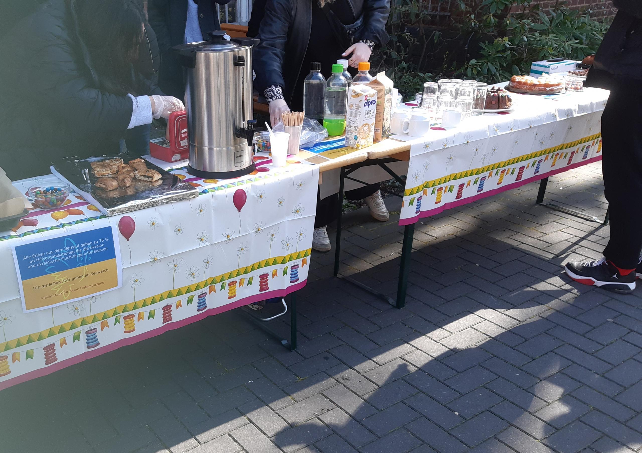 Die Klasse BFS20a entschied sich, einen Kuchenverkauf auf dem Schulgelände zu organisieren. Sie nahmen über 300,-€ ein. 75% davon spendeten sie der Berliner Ukraine-Hilfe, 25% ging an Seawatch, um damit auch Flüchtlingshilfe im Mittelmeerraum zu unterstützen.