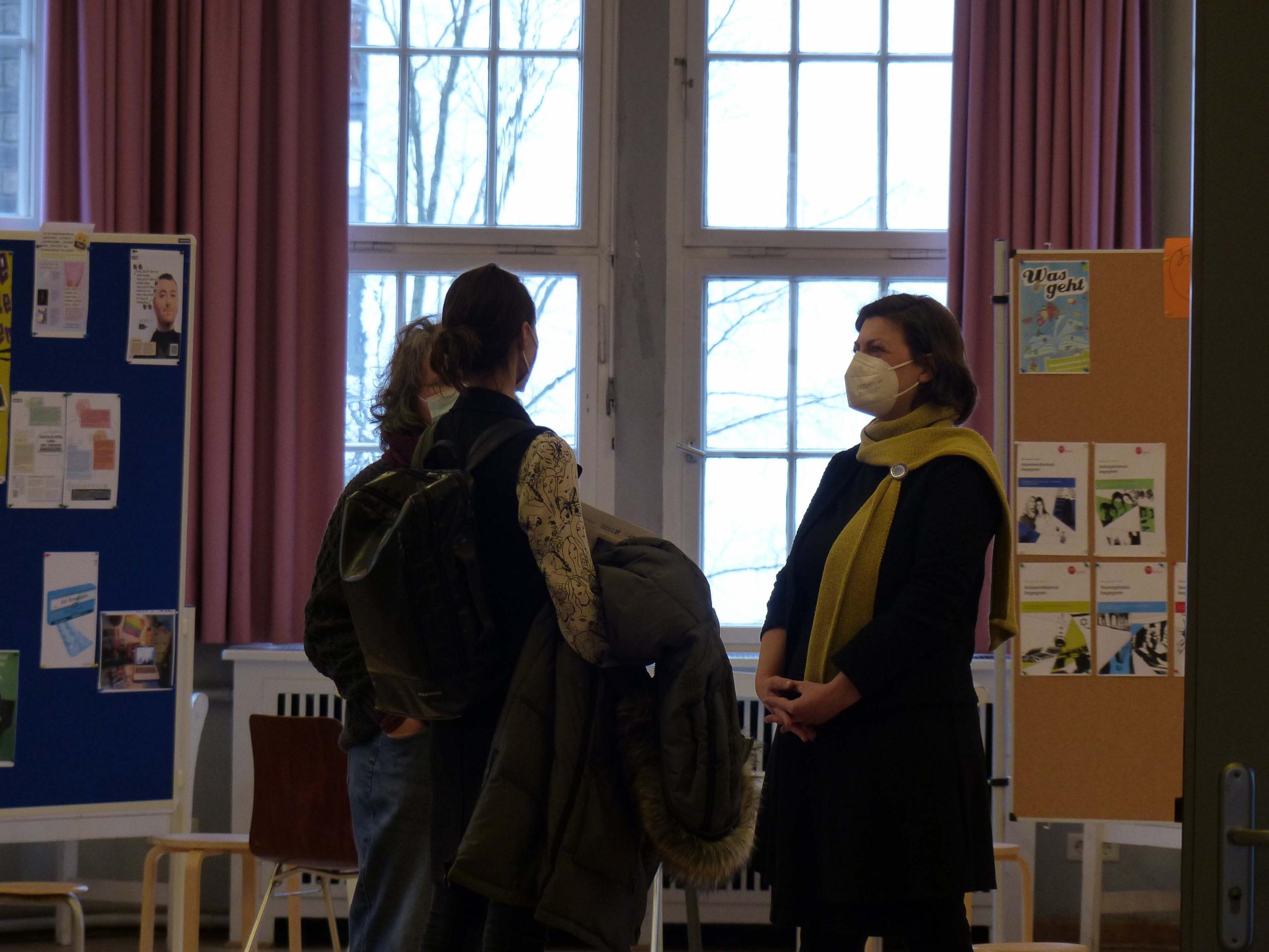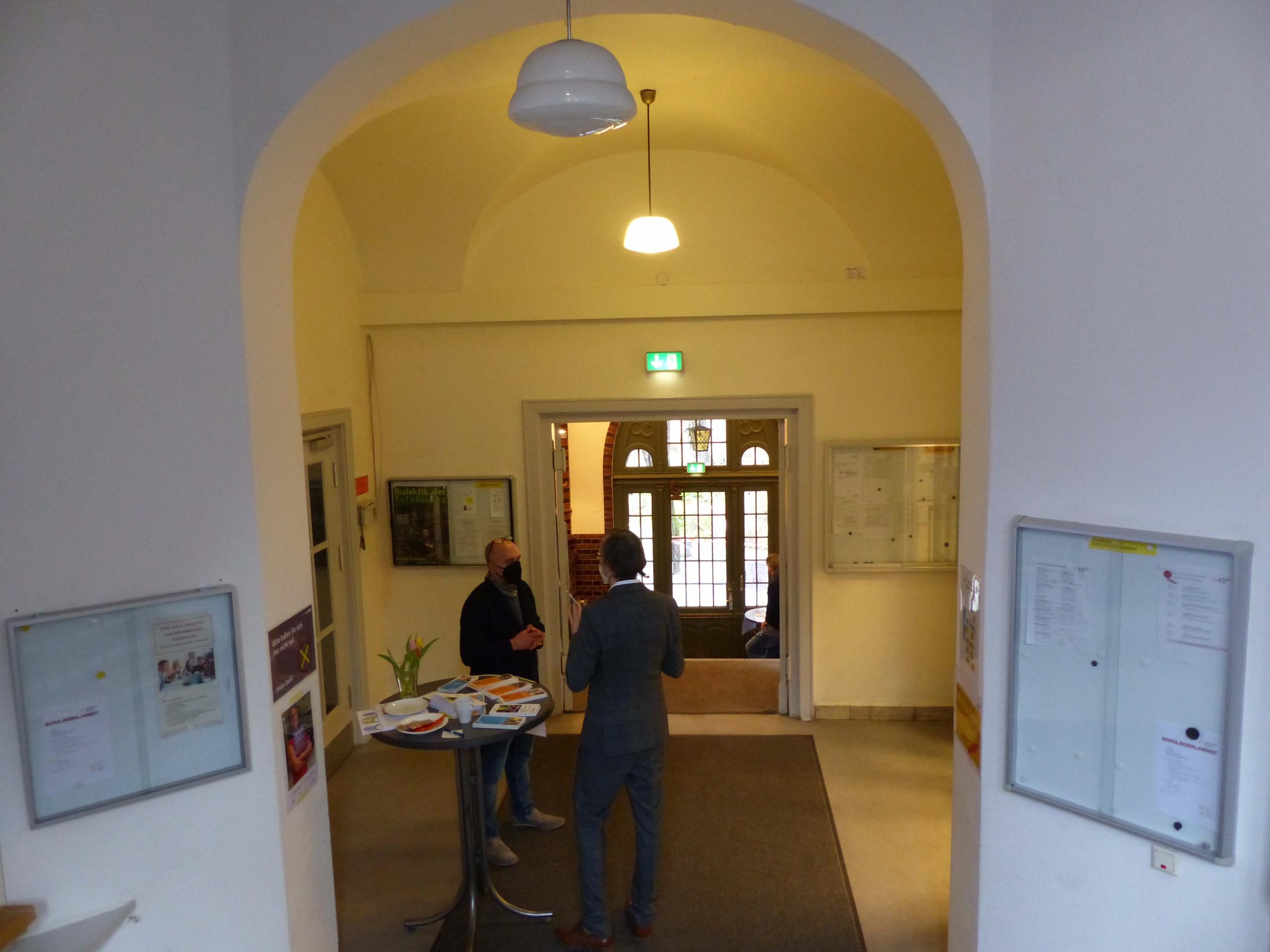 Es waren zwei gelungene Tage mit schöner Atmosphäre und intensiven Beratungen. Am Freitag, den 18. Februar und Samstag, den 19. Februar 2022 waren viele Lehrkräfte, Studierende und Schüler*innen des PFH im Einsatz, um interessierte Besucher*innen zu empfangen, zu beraten, zu informieren und durch die Schulgebäude zu führen. Trotz Wetterwarnung aufgrund eines starken Sturms waren rund 120 Besucher*innen ins PFH gekommen. Insbesondere die berufsbegleitende Erzieher*innenausbildung sowie das "2+2-Modell" zur Sozialpädagogischen Assistenz waren nachgefragt , bei letzterem Bildungsgang erhalten auch Schüler*innen ohne Abitur die Möglichkeit, Erzieher*in zu werden. Nach den Tagen durfte sich Schulleiter Jochen Knopp über zahlreiche neue Anmeldungen freuen. Doch hat die Bewerbungsphase 2022 erst begonnen, das heißt: Es sind in allen Bildungsgängen noch Plätze frei! Wer Interesse hat und sich beraten lassen möchte: bitte einfach anrufen.