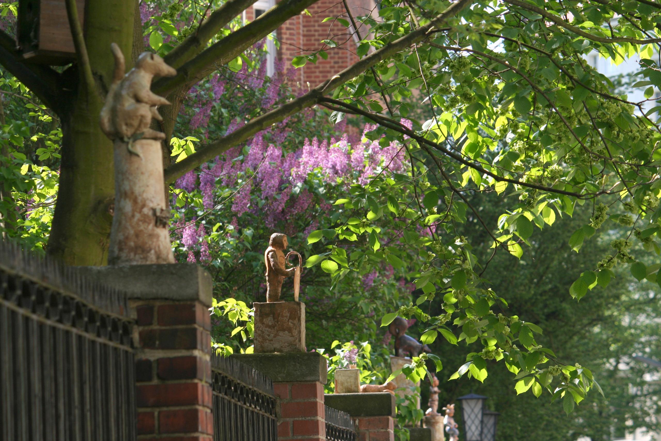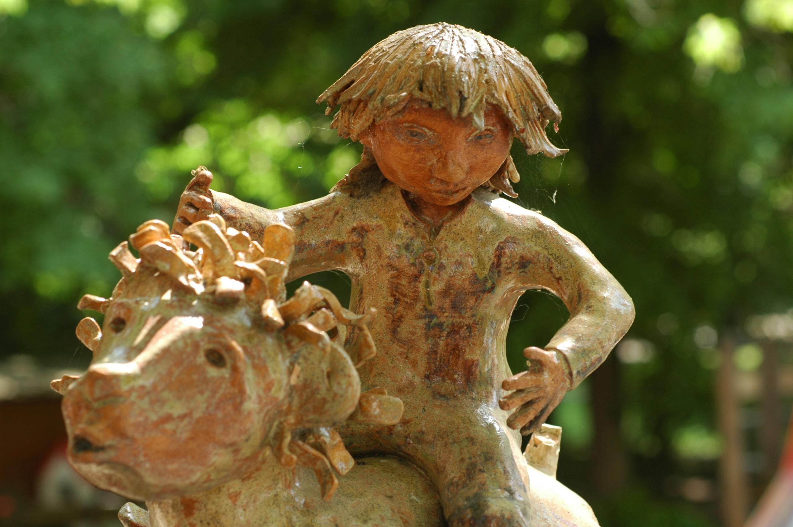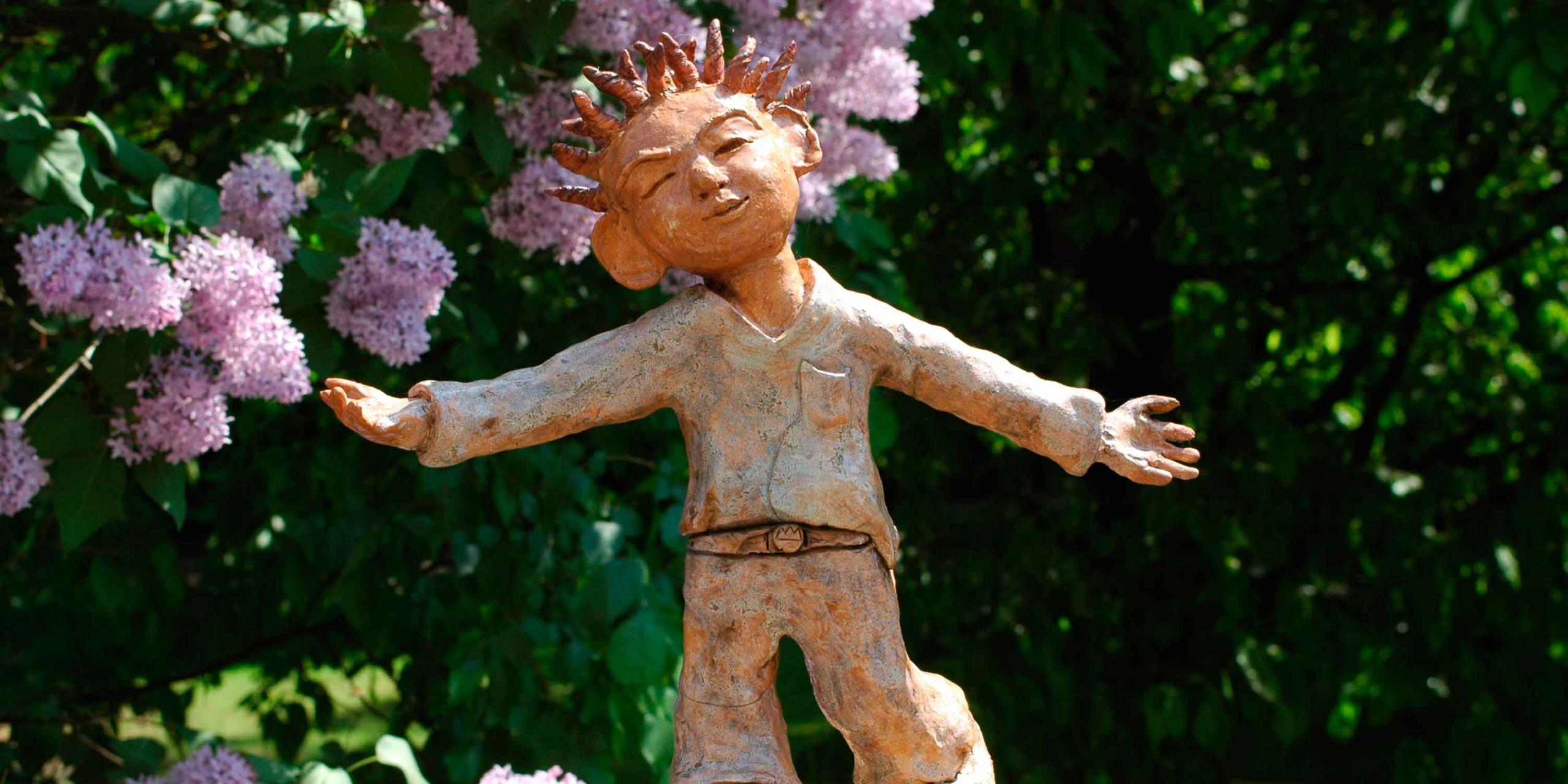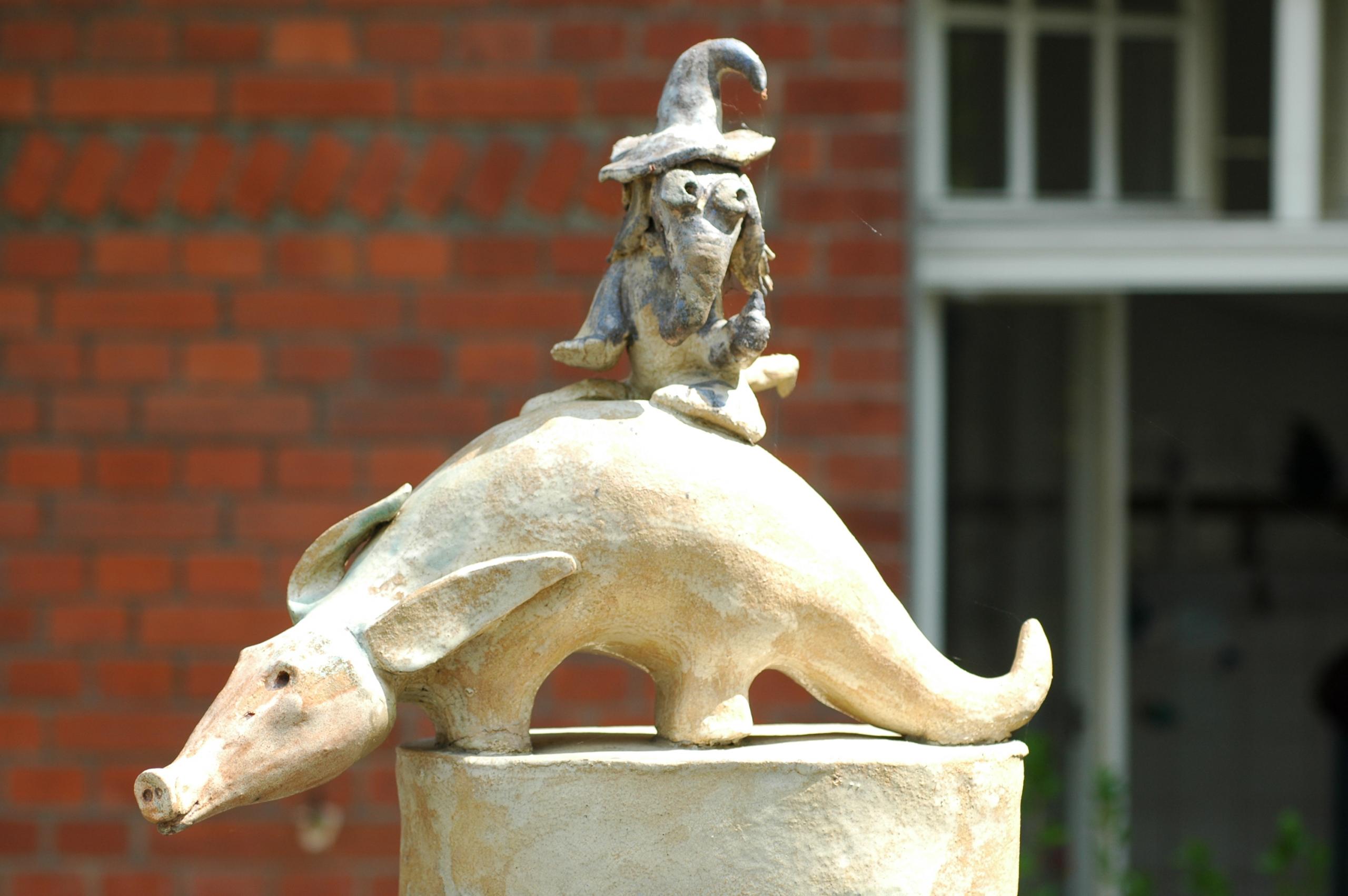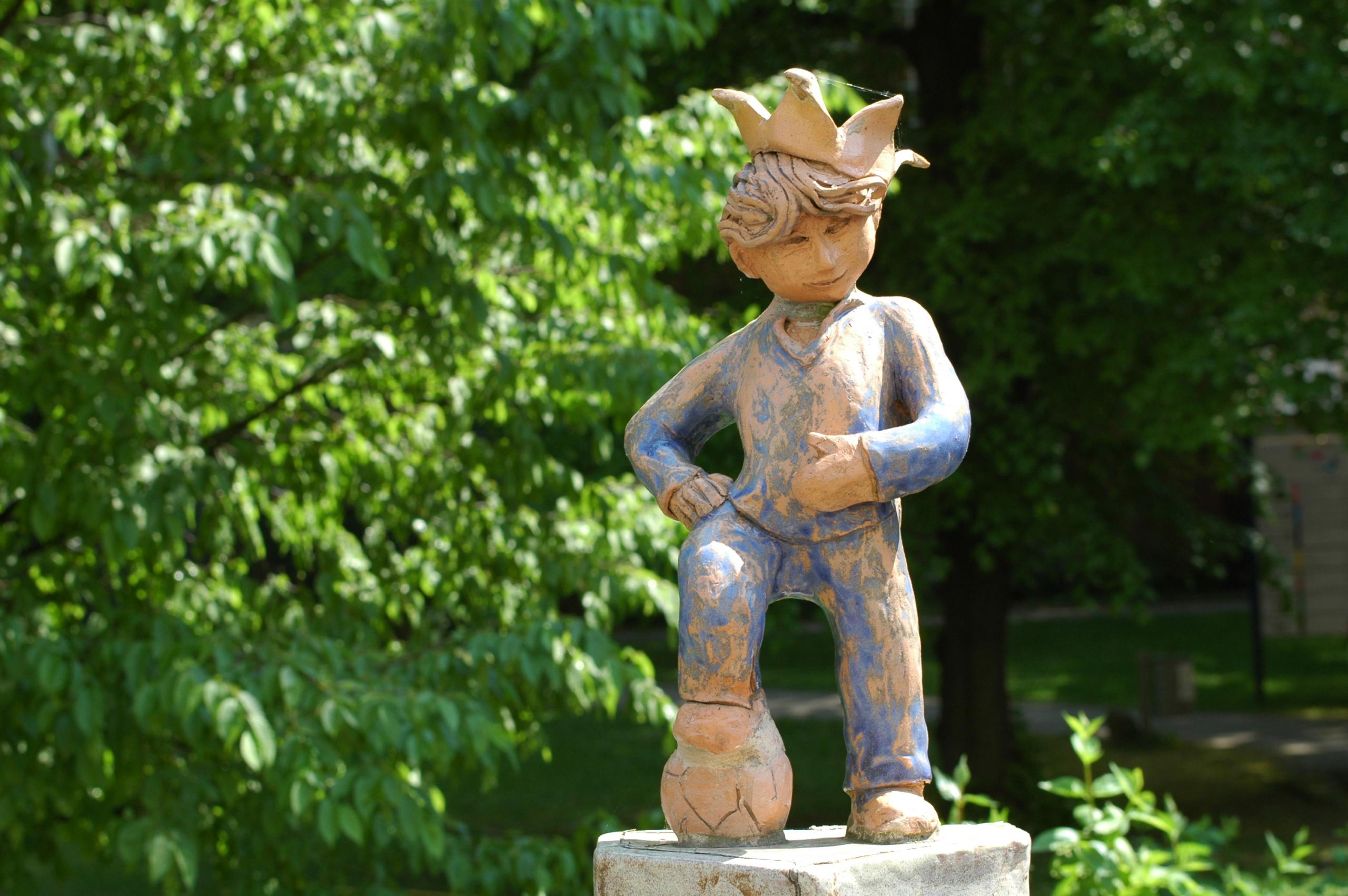 Man könnte denken, diese Keramikfiguren seien so alt wie das im Jahr 1874 gegründete PFH. Doch sind sie sehr viel später entstanden, und derjenige, der sie 1998 ins Leben rief, wohnt direkt gegenüber des PFH in der Karl-Schrader-Straße. Täglich schaut er von den Fenstern seines Künstler-Ateliers aus auf "seine Kinder". 30 Jahre lang hat der Maler Bernd Krüerke Kunst an der Erzieher*innenfachschule des Pestalozzi-Fröbel-Hauses gelehrt. Die Kinderkönige waren ein Projekt, das er gemeinsam mit seinen Schüler*innen gestaltete. "Das Kind als König" lautete das Thema, nach dem die Studierenden ihre zumeist erste Keramikfigur in einem aufwendigen technischen Verfahren erarbeiteten. Ganz bewusst hatte Krüerke diesen "oppositionellen, provokanten Titel" gewählt und amüsiert sich heute noch über die irritierten Reaktionen, die er damals bei manchen Pädagog*innen mit seinem Projekt ausgelöst hat. "Ja, ich weiß, dass Kindern nicht alles erlaubt werden darf", sagt er. Mit dem Thema wollte er die Kreativität der jungen Menschen wecken. Welch Vorstellung: Die Kinder als König, befreit von jeglichem Druck und von moralischer Erniedrigung. "Das erzeugt Motivation"". Aber: "Natürlich kann ein Kind nicht immer König sein".